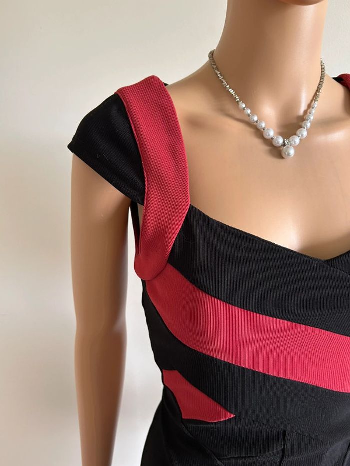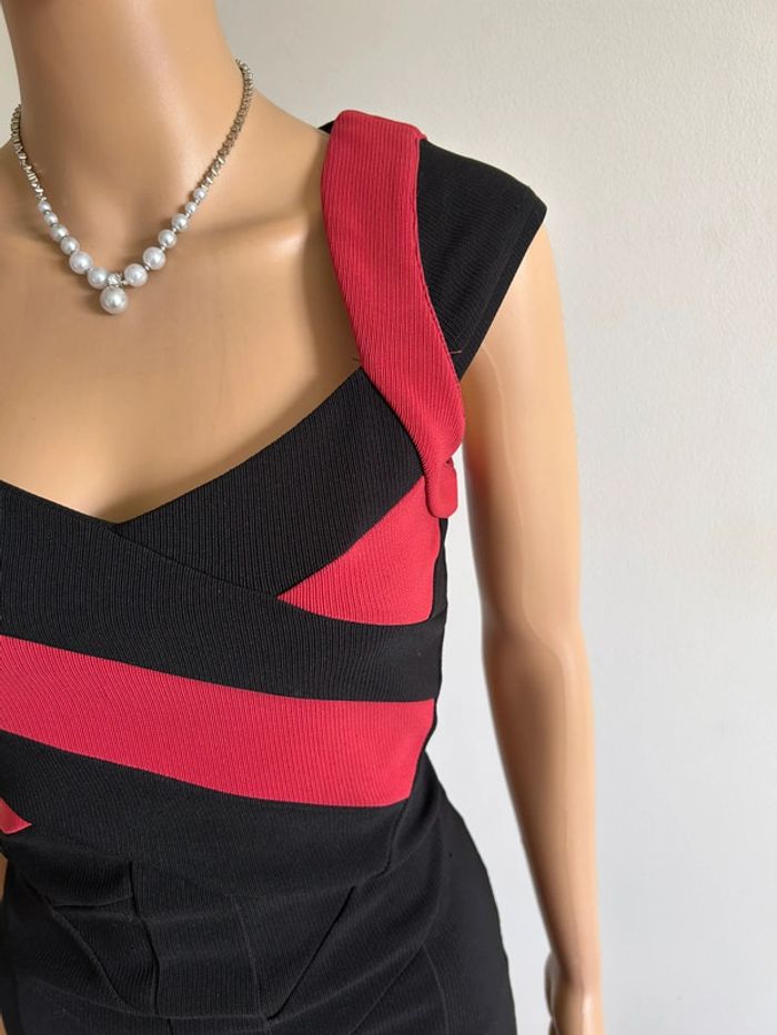 Magnifique robe noire et rouge à manches courtes, de marque Morgan. Fermeture dans le dos. Correspond à une taille 36 (étiquette de taille coupée, voir mesures en dessous). Portée quelques fois, en très bon état. aisselle à aisselle 39 cms à 45 cms taille 34 cms à 39 cms longueur depuis épaule 85 cms Le tissu est extensible Étiquette intérieure de composition coupée Le prix reste négociable dans la limite du raisonnable. Un petit cadeau dans le colis 🌸