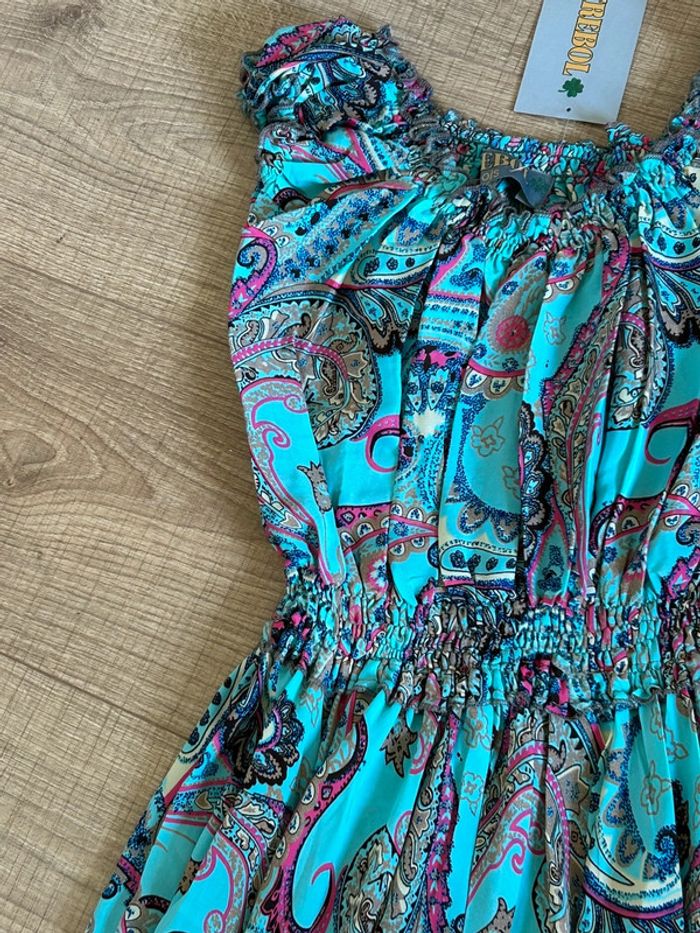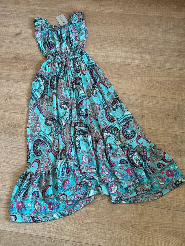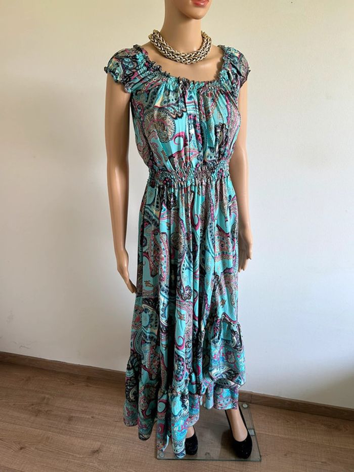 Robe longue turquoise neuve en soie Trebol taille unique - photo numéro 3