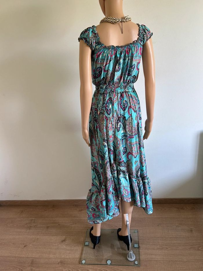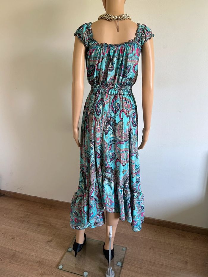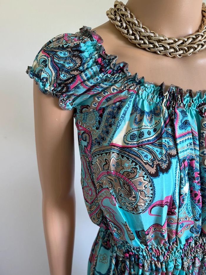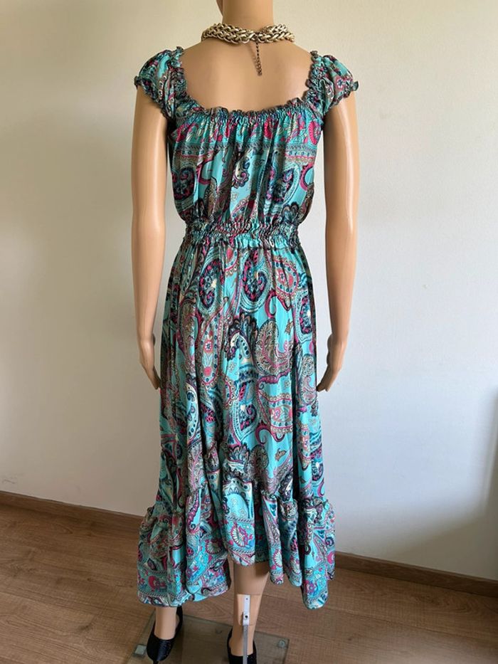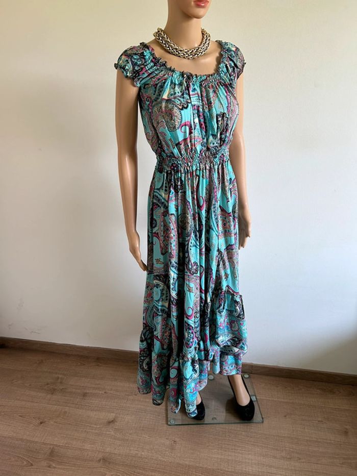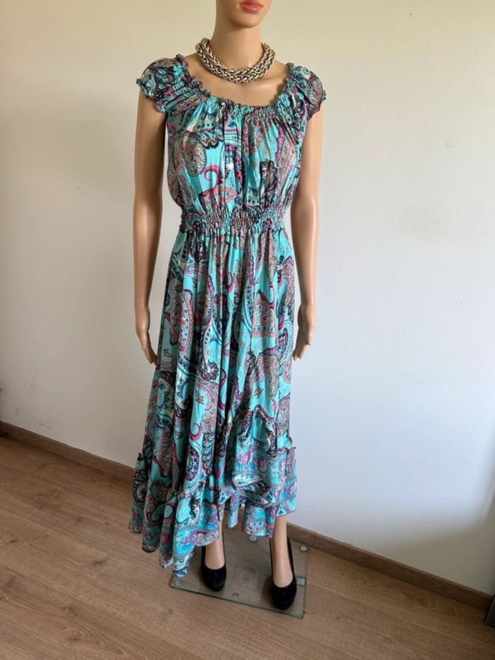Robe longue turquoise neuve en soie Trebol taille unique - photo numéro 5