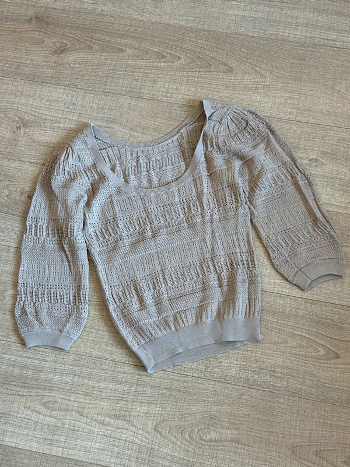 Joli pull court beige, avec manches 3/4, de marque Morgan. Taille S. Porté une fois, il est comme neuf. aisselle à aisselle 39 cms à 47 cms épaule à épaule 34 cms et plus longueur manches 44 cms taille 31 cms à 39 cms longueur depuis épaule 57 cms Le tissu est extensible Étiquette intérieure de composition coupée Le prix reste négociable dans la limite du raisonnable. Un petit cadeau dans le colis 🌸 (Boîte 1)