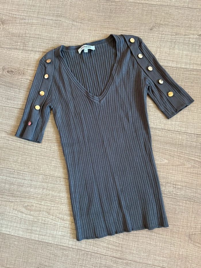 Pull gris kaki à manches courtes Morgan taille S TBE
