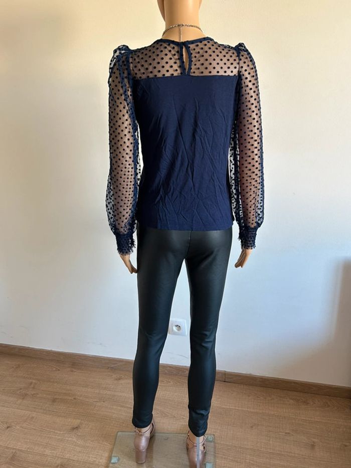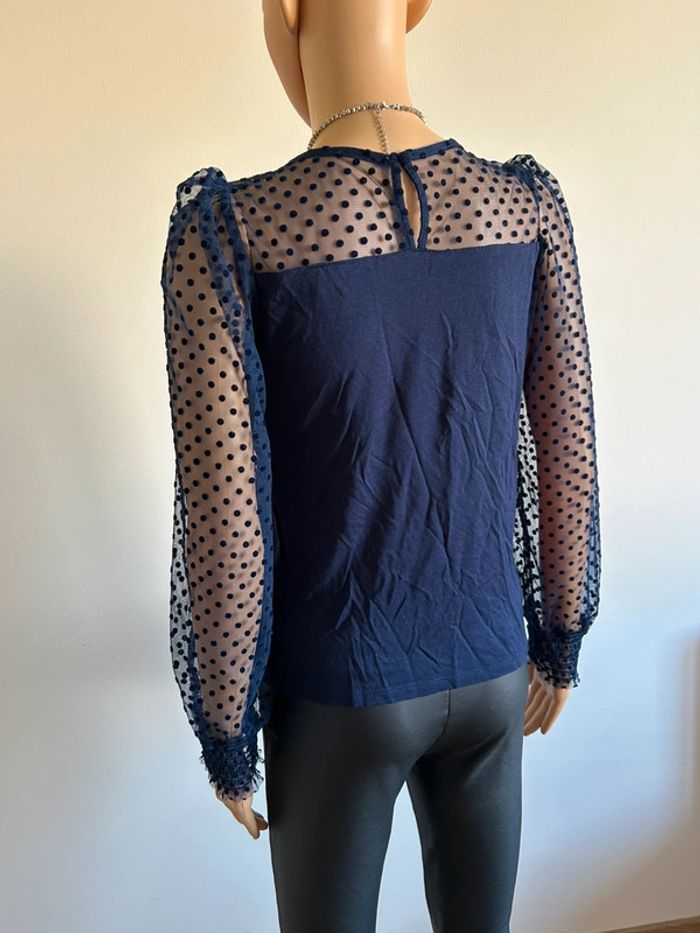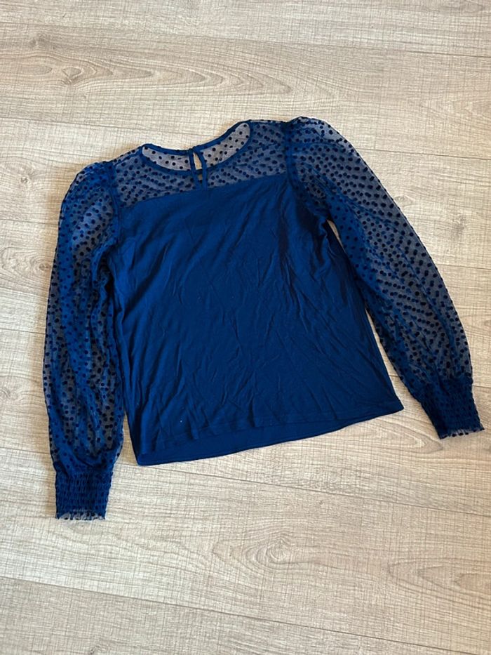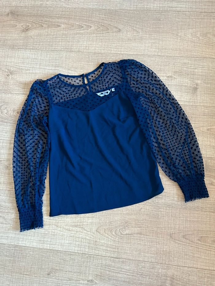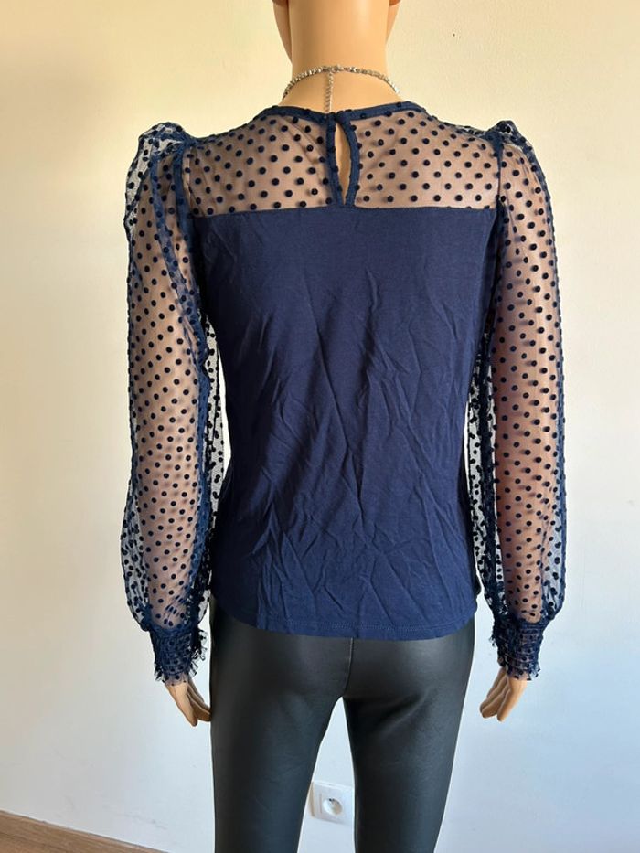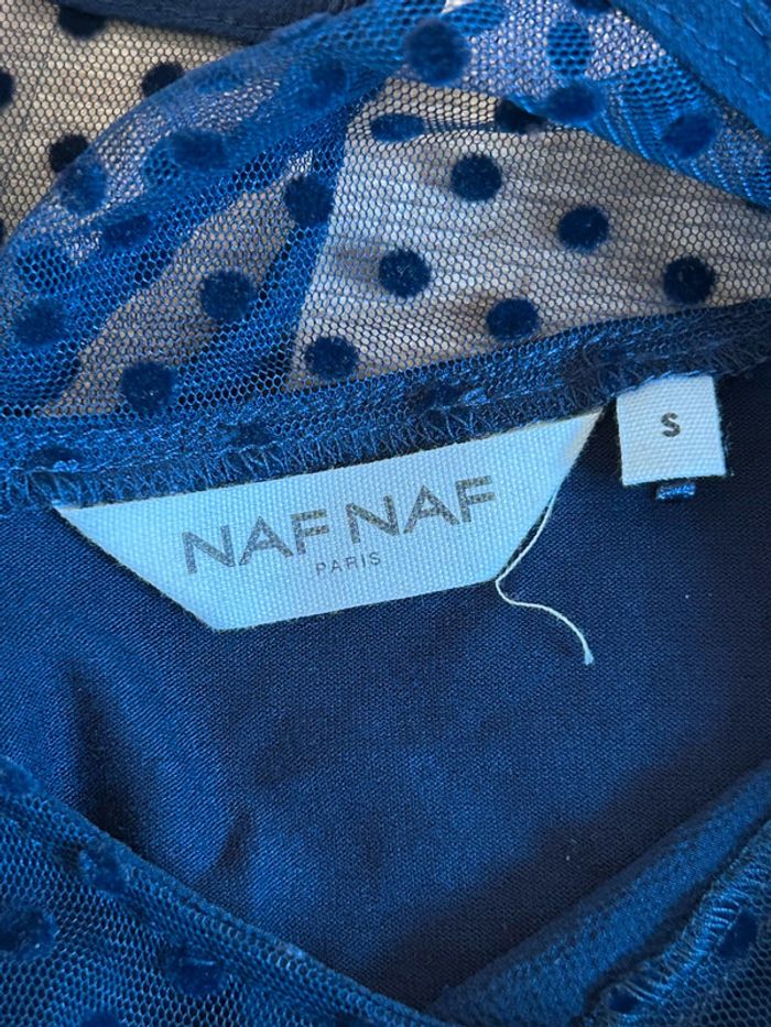 Magnifique blouse bleue avec manches longues en plumetis, de marque Naf Naf.