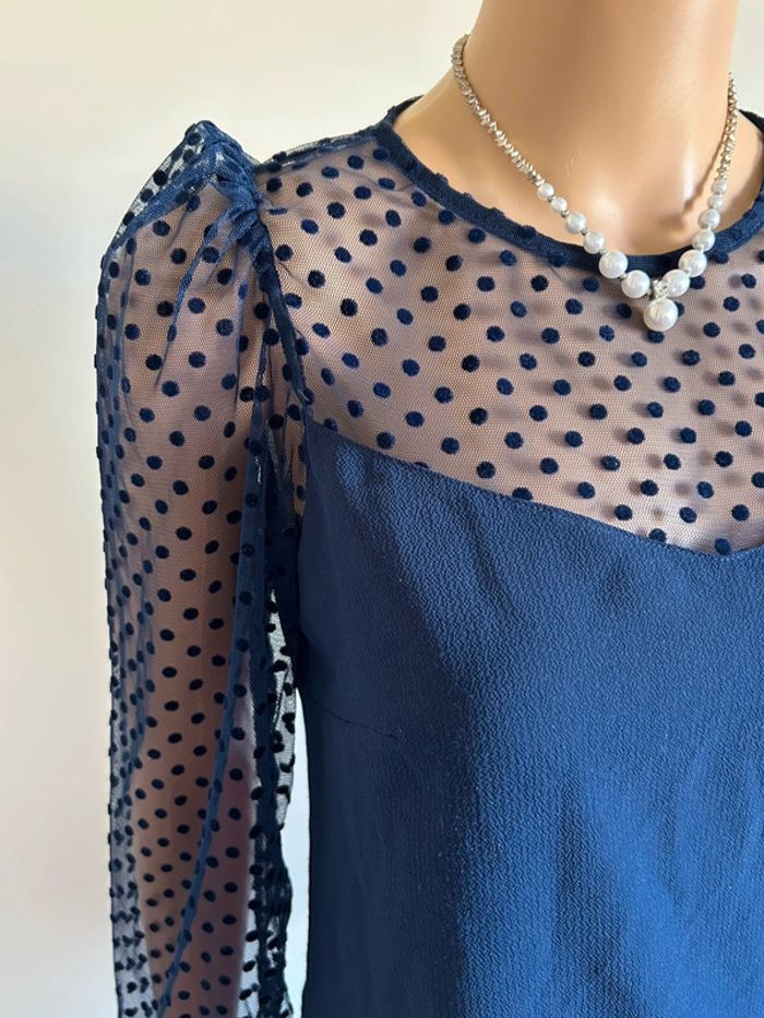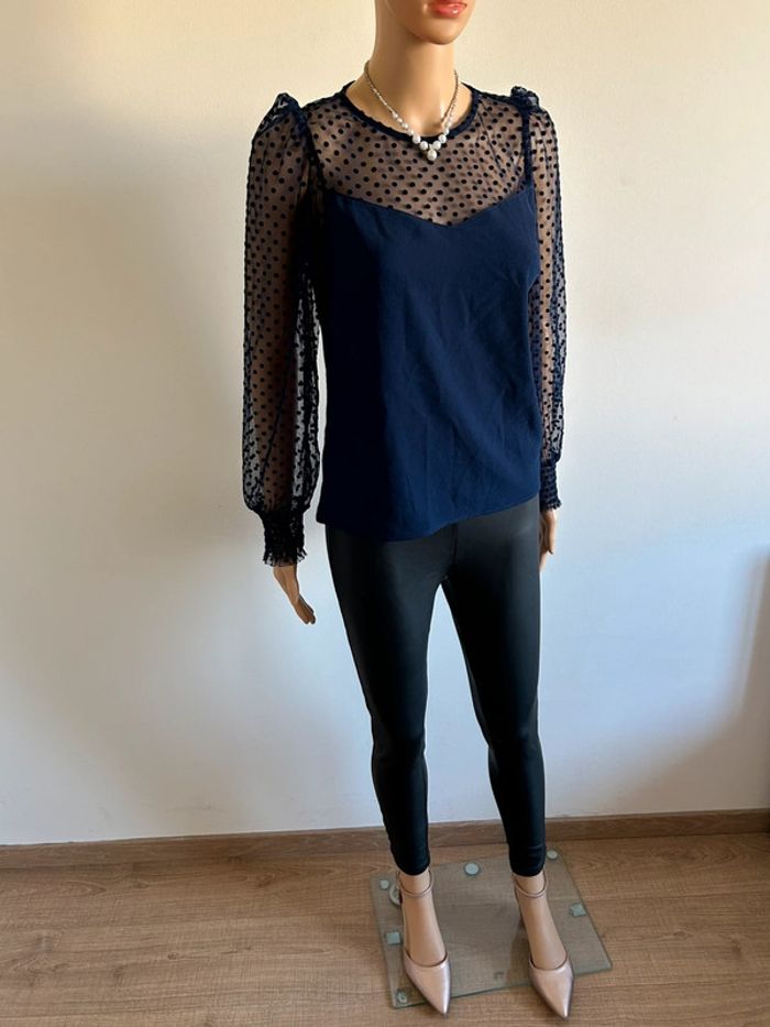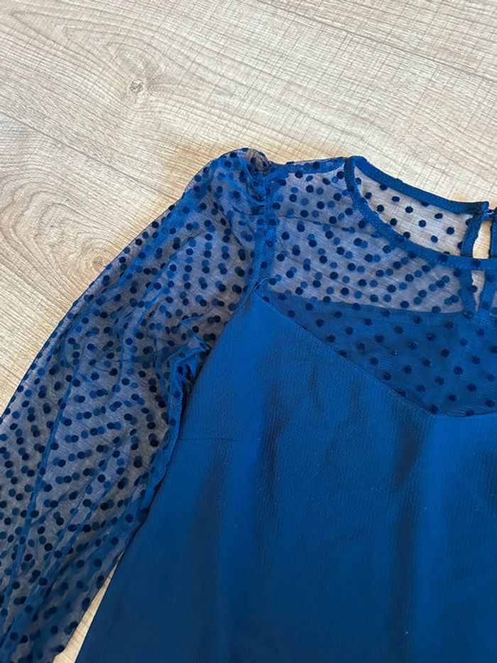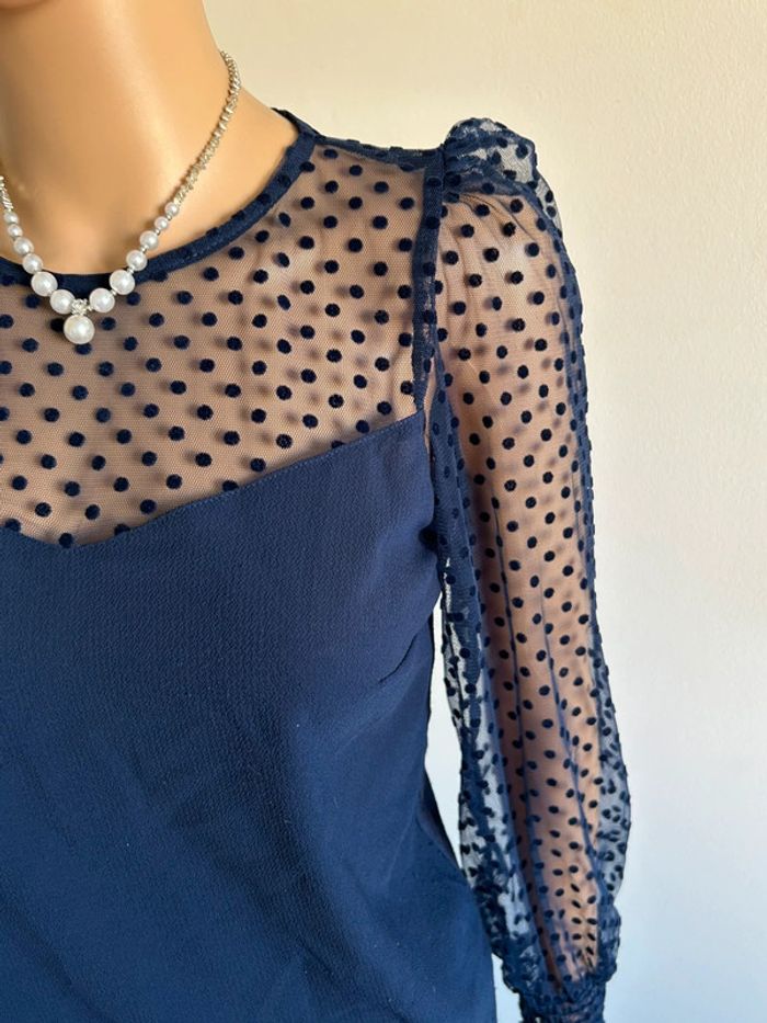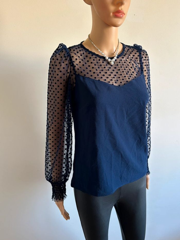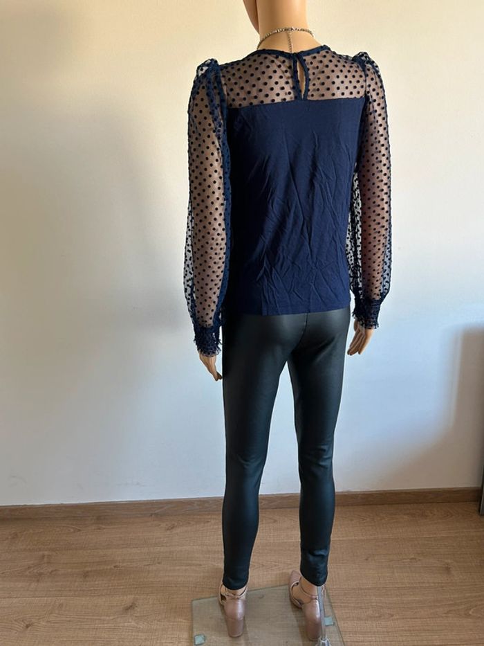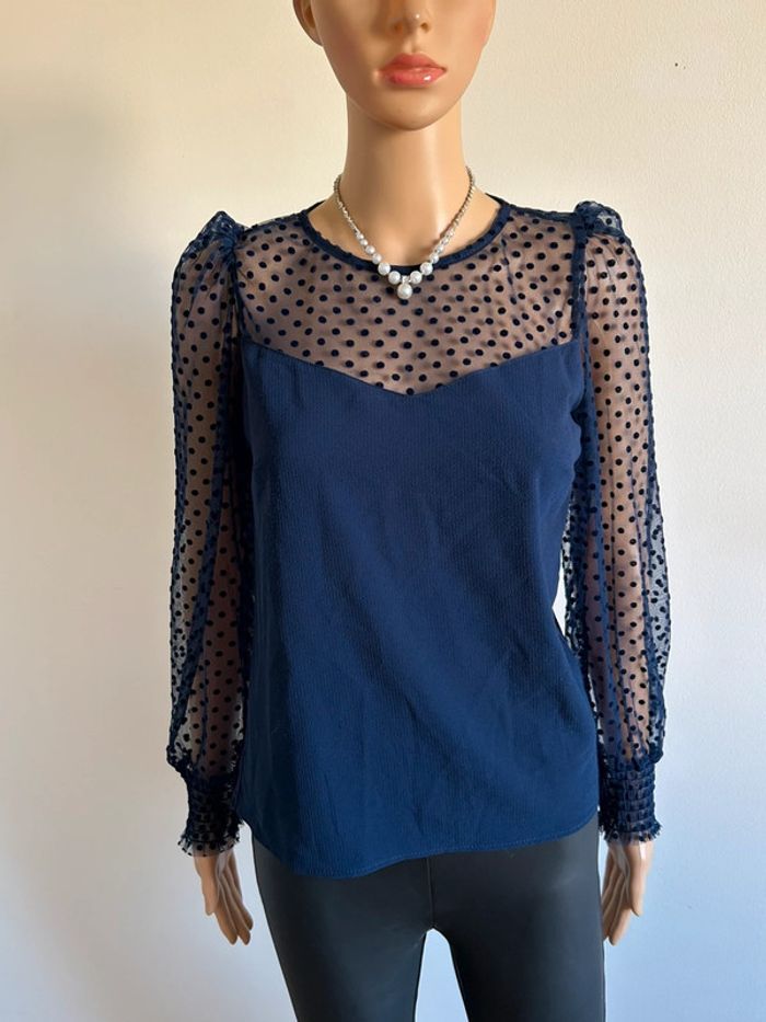 Magnifique blouse bleue avec manches longues en plumetis, de marque Naf Naf.