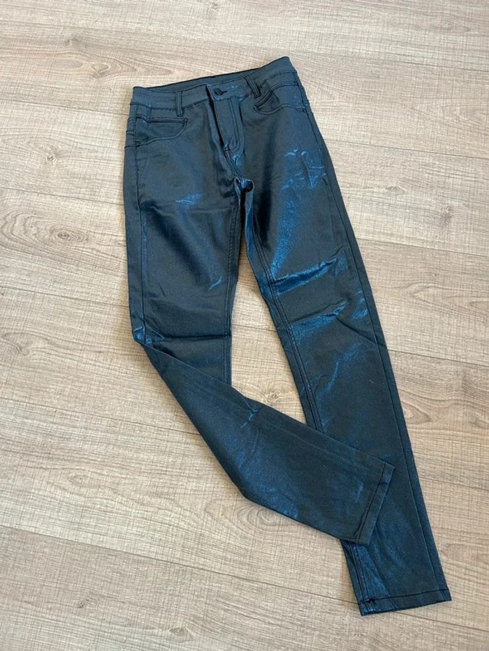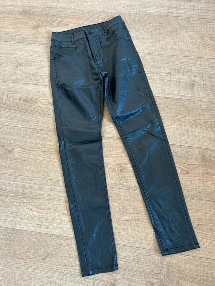 Pantalon noir pailleté en simili cuir Mademoiselle à Paris taille S jamais porté - photo numéro 1