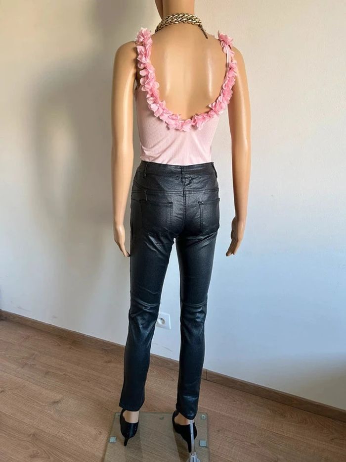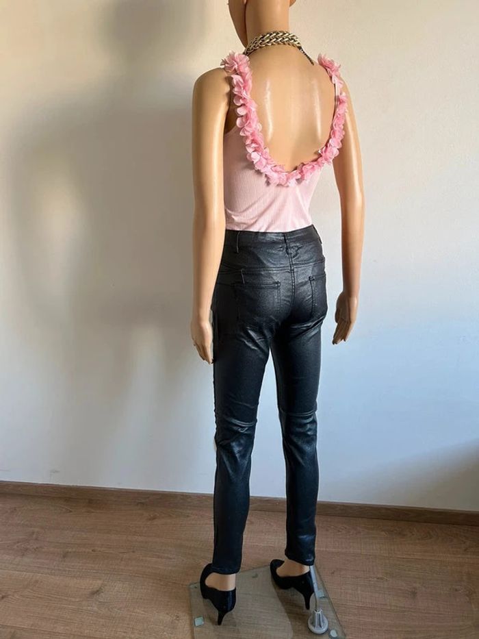 Pantalon noir pailleté en simili cuir Mademoiselle à Paris taille S jamais porté - photo numéro 4