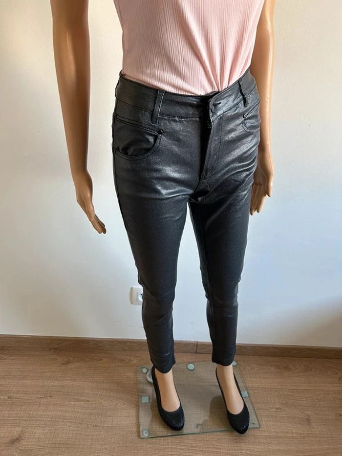 Pantalon noir pailleté en simili cuir Mademoiselle à Paris taille S jamais porté - photo numéro 3