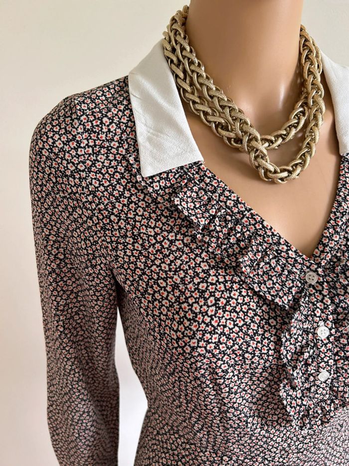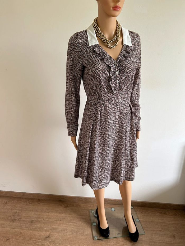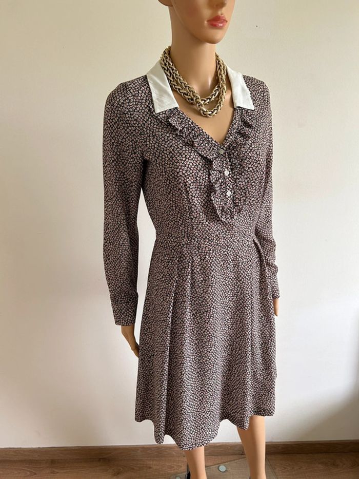 Jolie robe imprimée à manches longues, de marque Kookai. Fermeture sur le côté. Taille 36. Jamais portée, état neuf. aisselle à aisselle 43 cms épaule à épaule 36 cms longueur manches 59 cms taille 35 cms longueur depuis épaule 90 cms 98% polyester et 2% elasthanne Le prix reste négociable dans la limite du raisonnable. Un petit cadeau dans le colis 🌸 (Boîte 37)