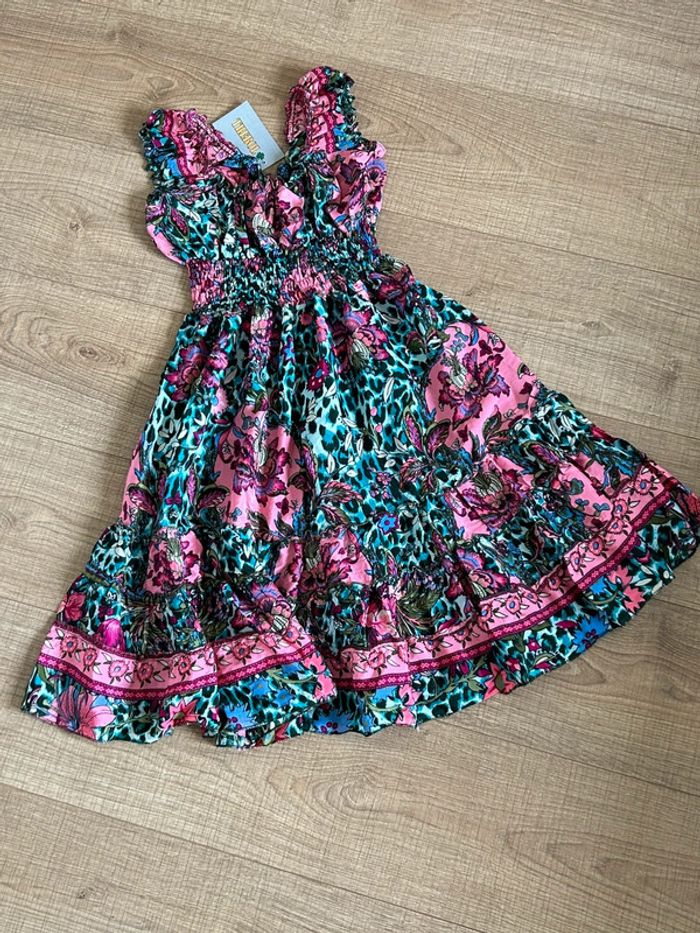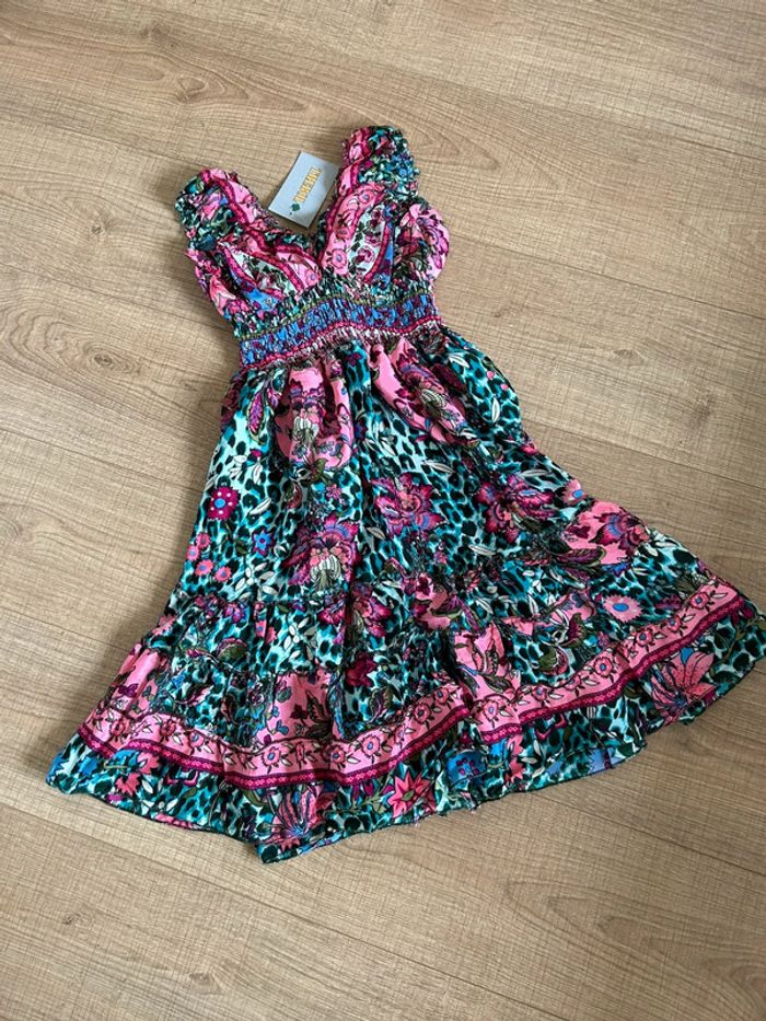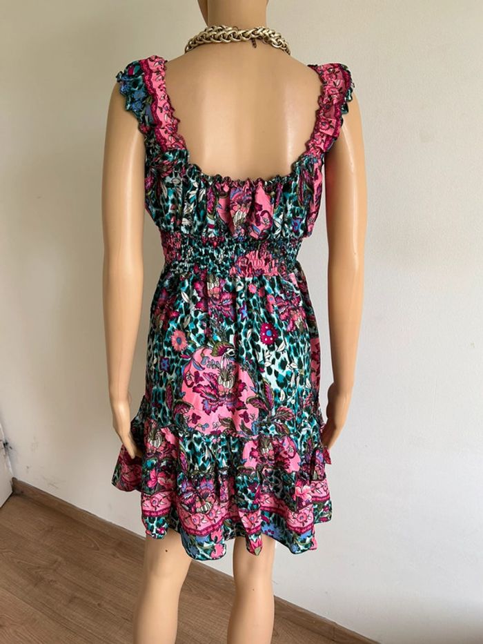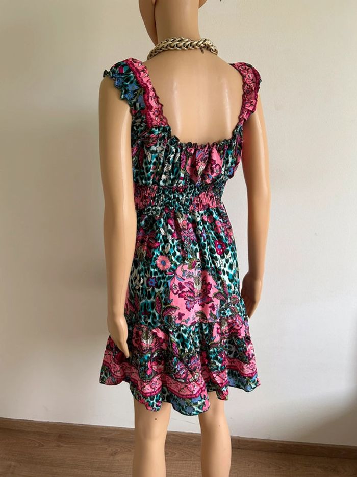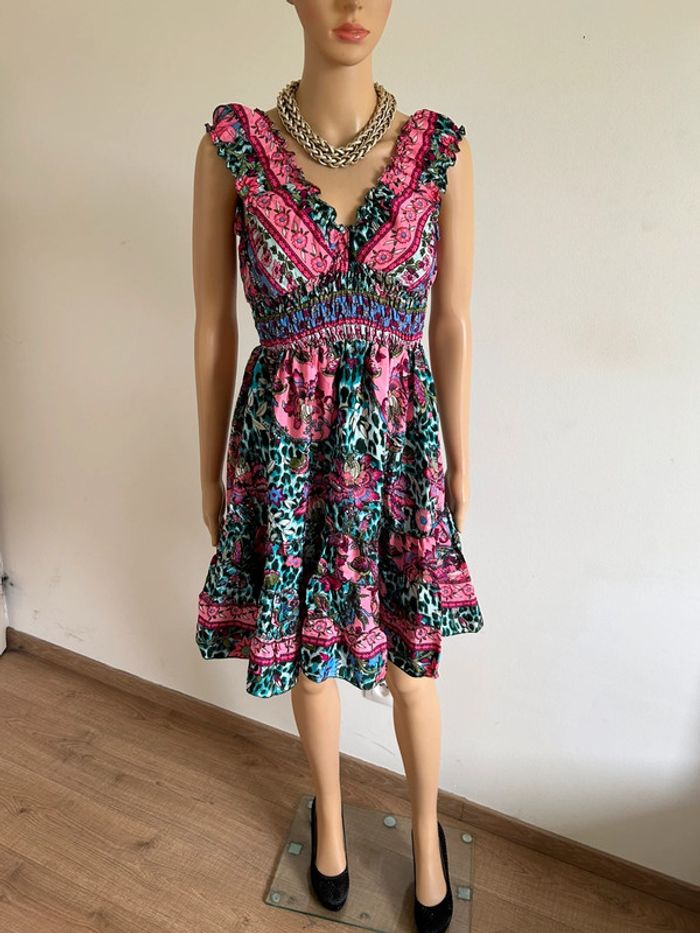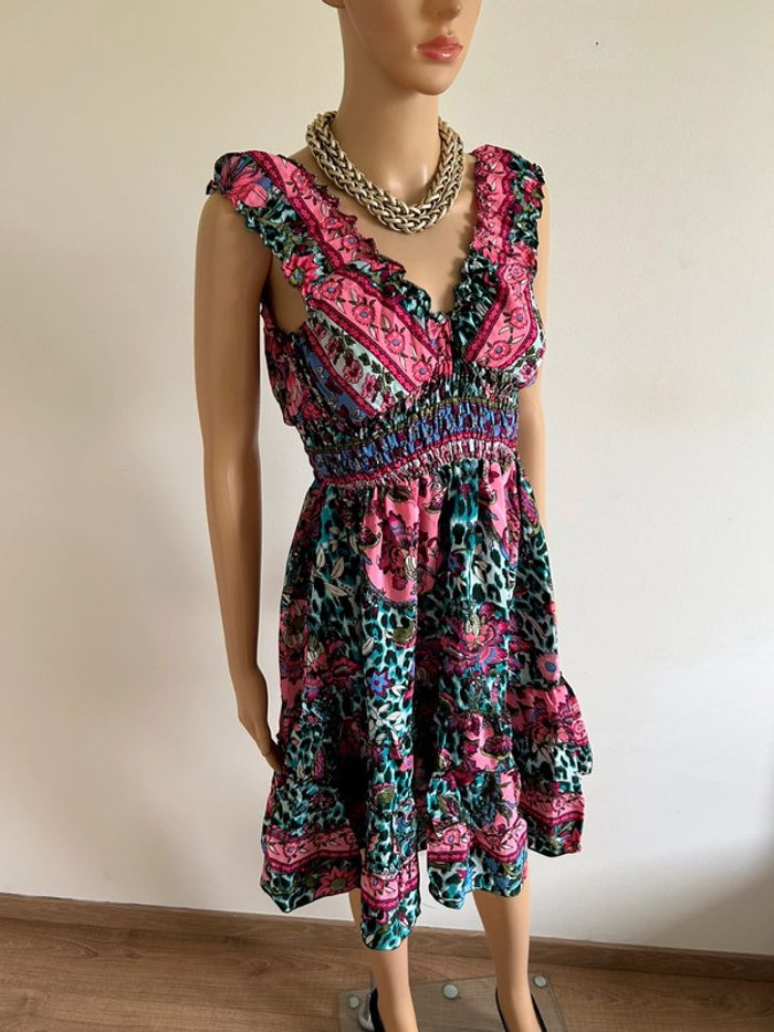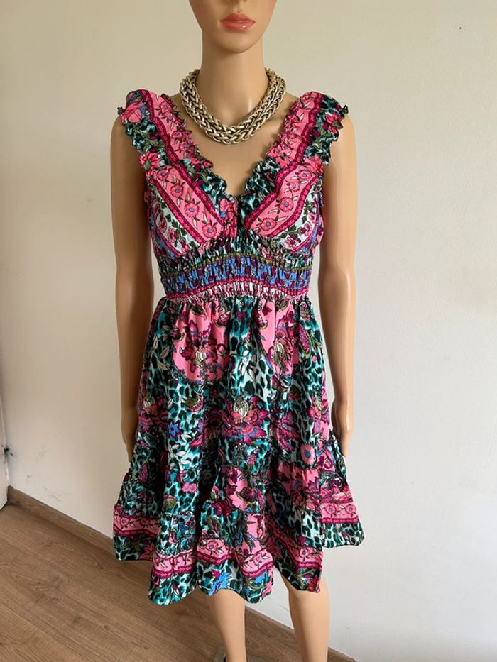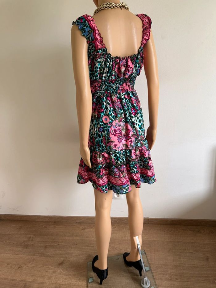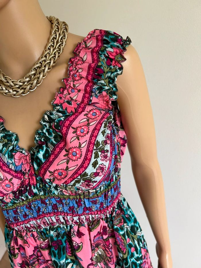 Jolie robe imprimée mi longue en soie, sans manches, de marque Trebol. Taille S. Elle est neuve avec étiquette. aisselle à aisselle 34 cms à 50 cms taille 25 cms à 48 cms longueur depuis épaule 86 cms La taille est extensible 70% soie et 30% polyester Le prix reste négociable dans la limite du raisonnable. Un petit cadeau dans le colis 🌸