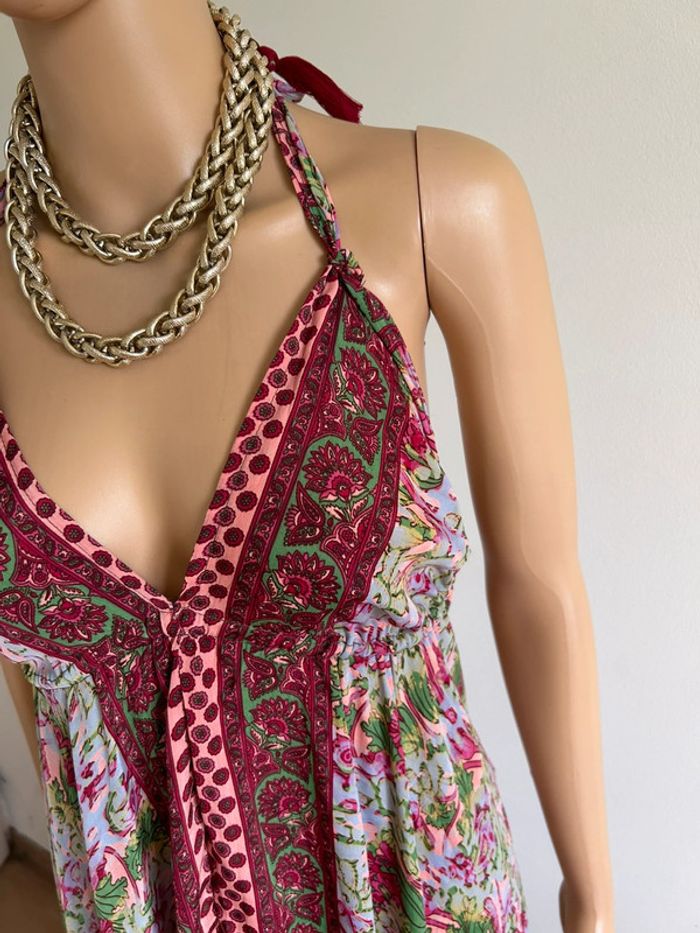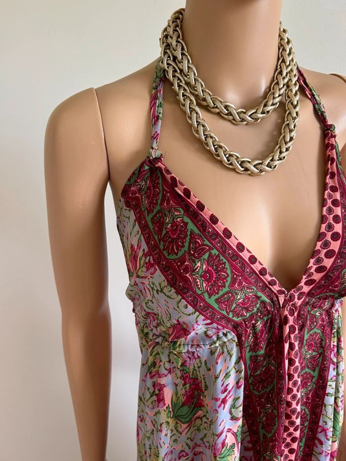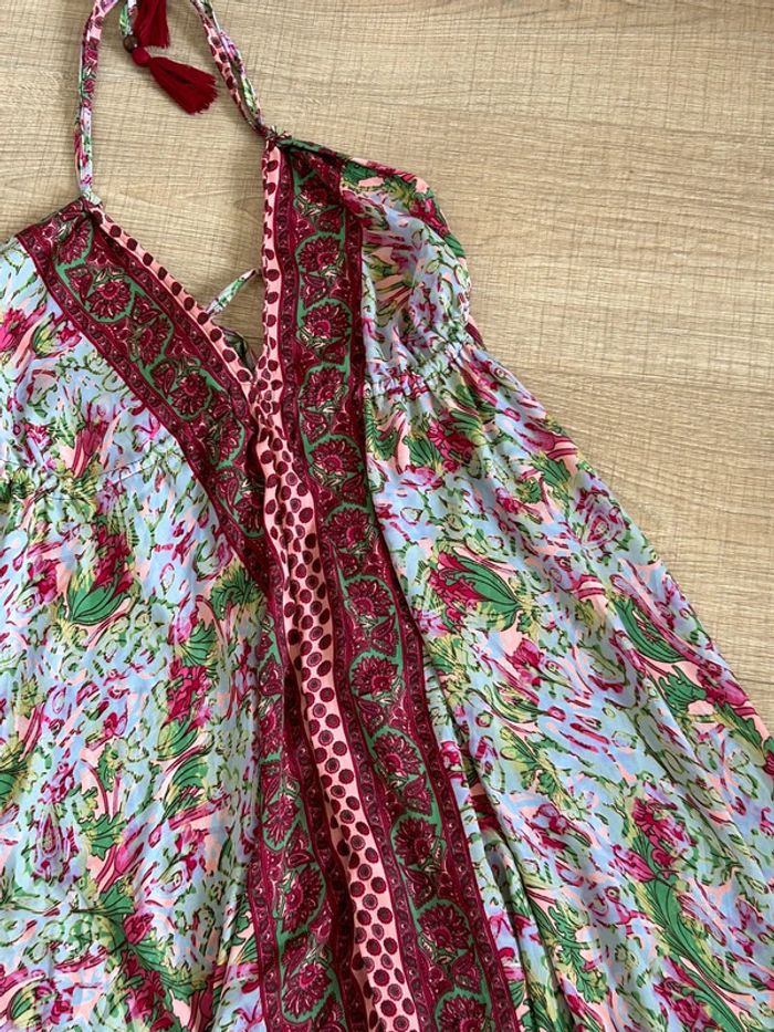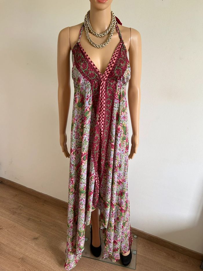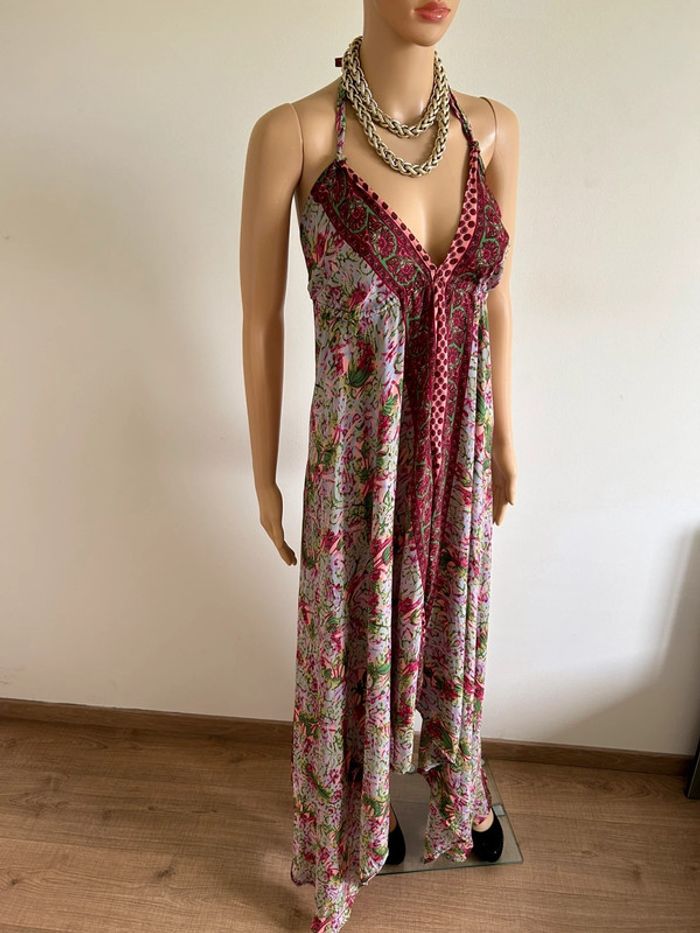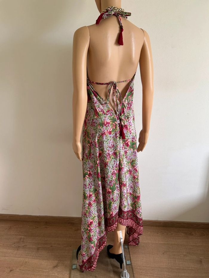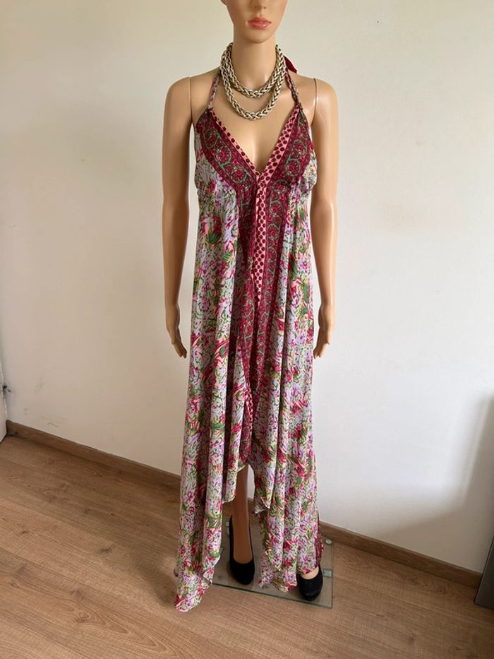 Magnifique robe longue imprimée en soie, avec dos nu, de marque Trebol. Taille S. Elle est neuve avec étiquette. 70% soie et 30% polyester Le prix reste négociable dans la limite du raisonnable. Un petit cadeau dans le colis 🌸