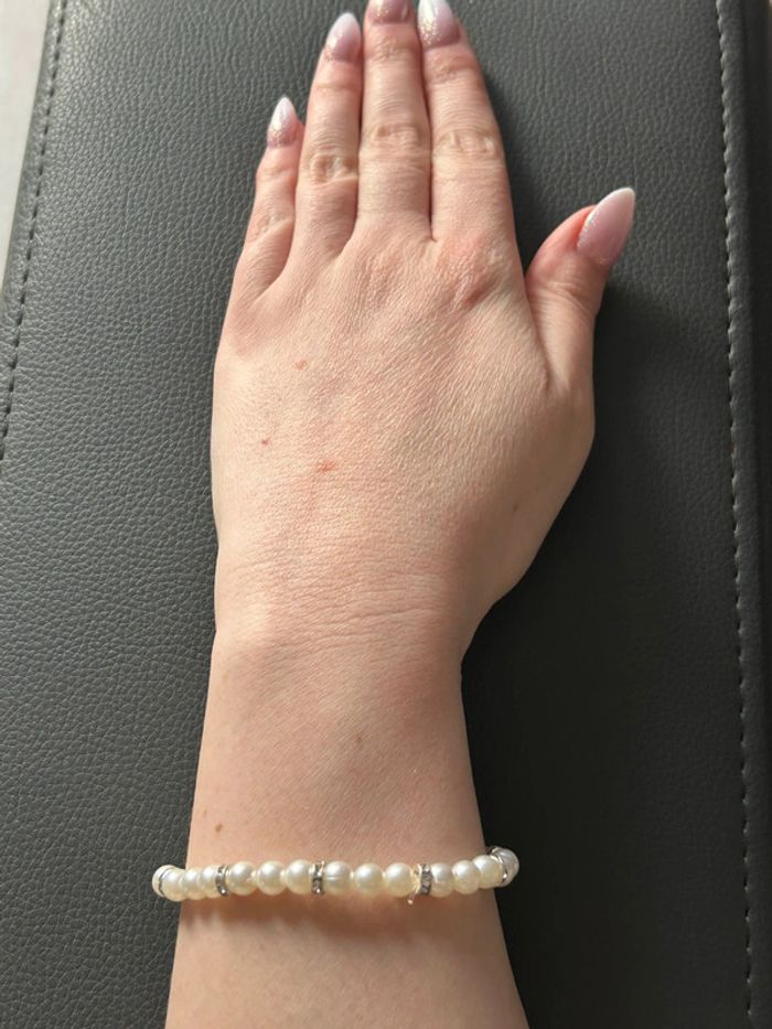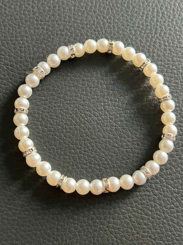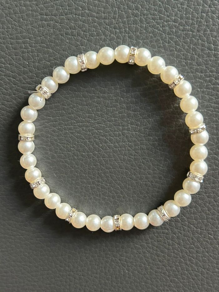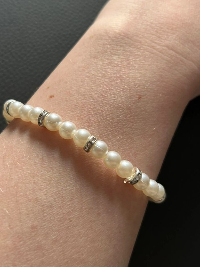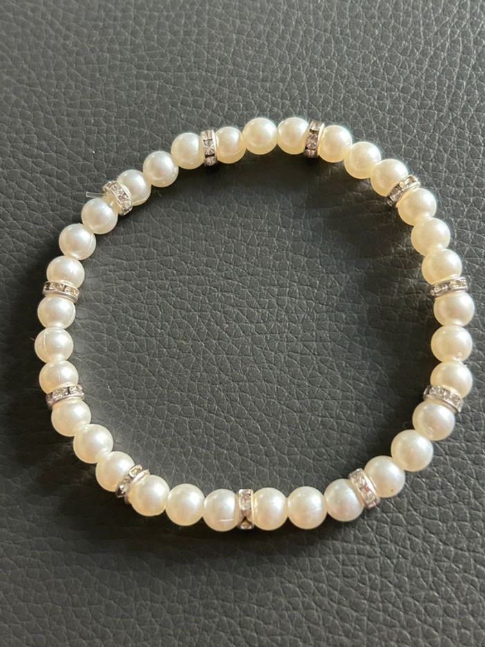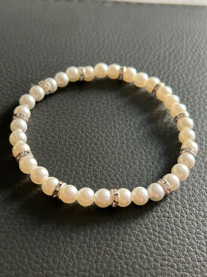 Joli bracelet crème et argenté en perles. Taille unique. Jamais porté, état neuf.