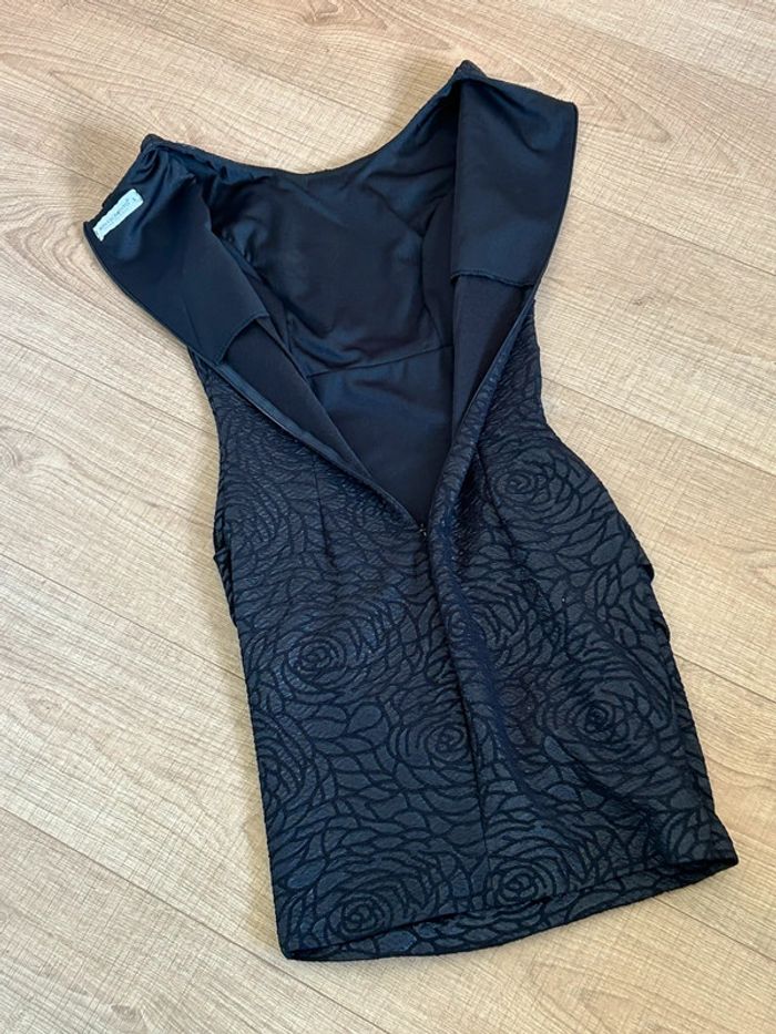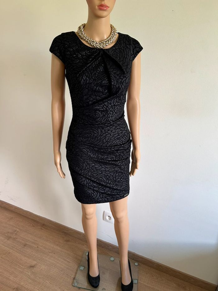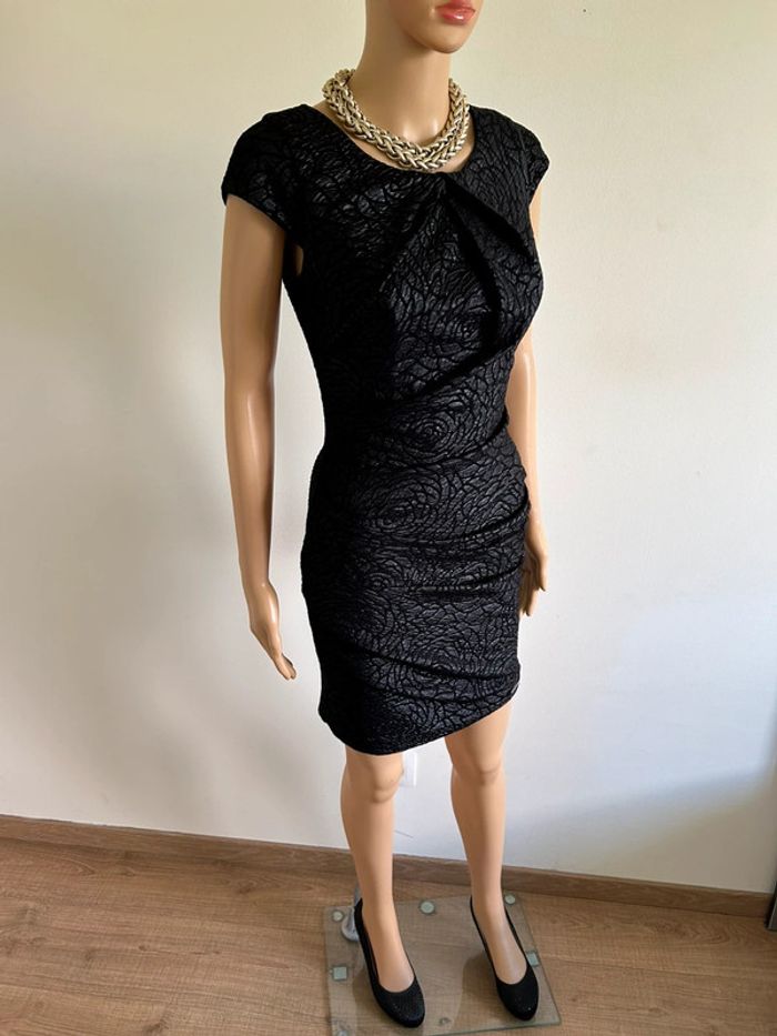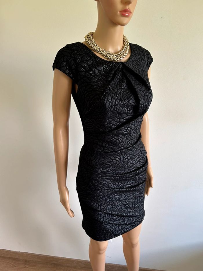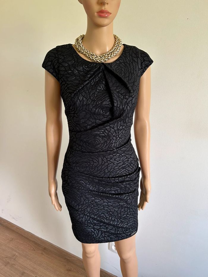 Magnifique robe noire à manches courtes, de marque Rinascimento. Fermeture dans le dos. Taille S. Portée une fois, elle est comme neuve. aisselle à aisselle 37 cms à 44 cms épaule à épaule 33 cms à 37 cms taille 31 cms à 37 cms longueur depuis épaule 86 cms Le tissu est extensible Étiquette intérieure de composition coupée Le prix reste négociable dans la limite du raisonnable. Un petit cadeau dans le colis 🌸 (Boîte 34)