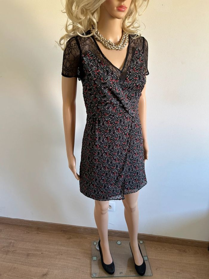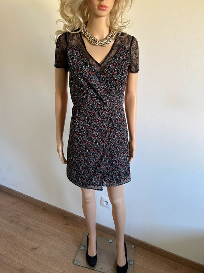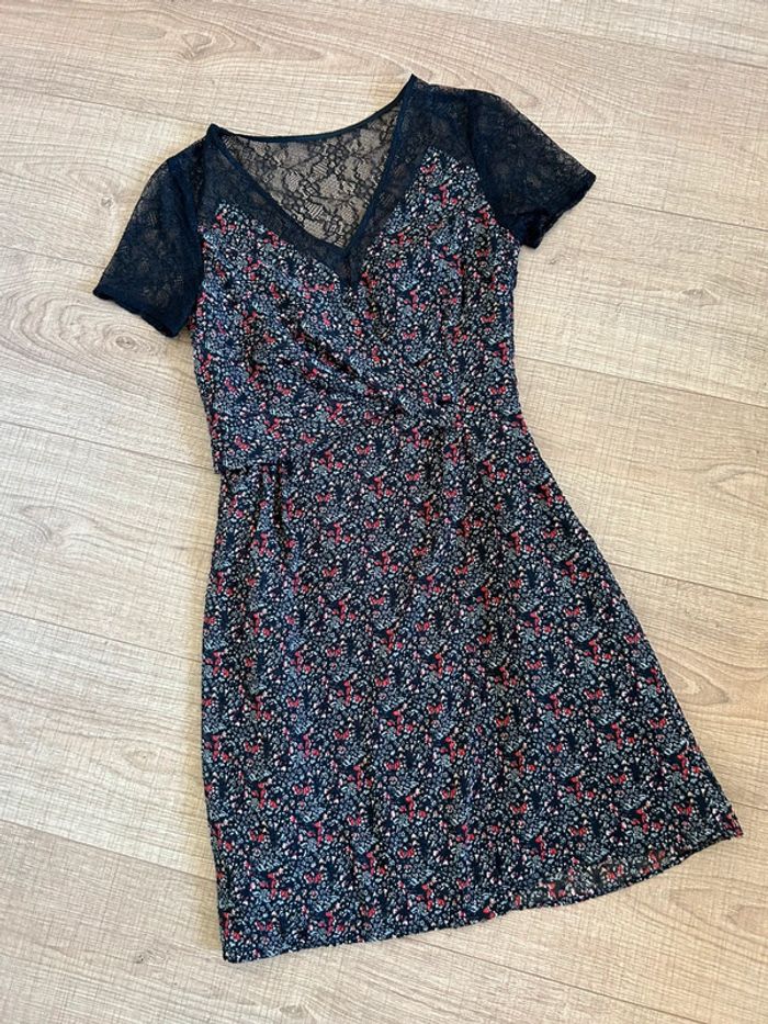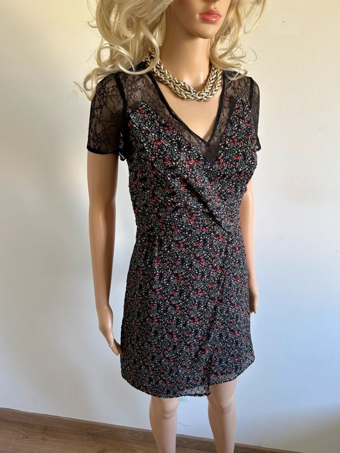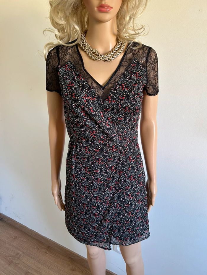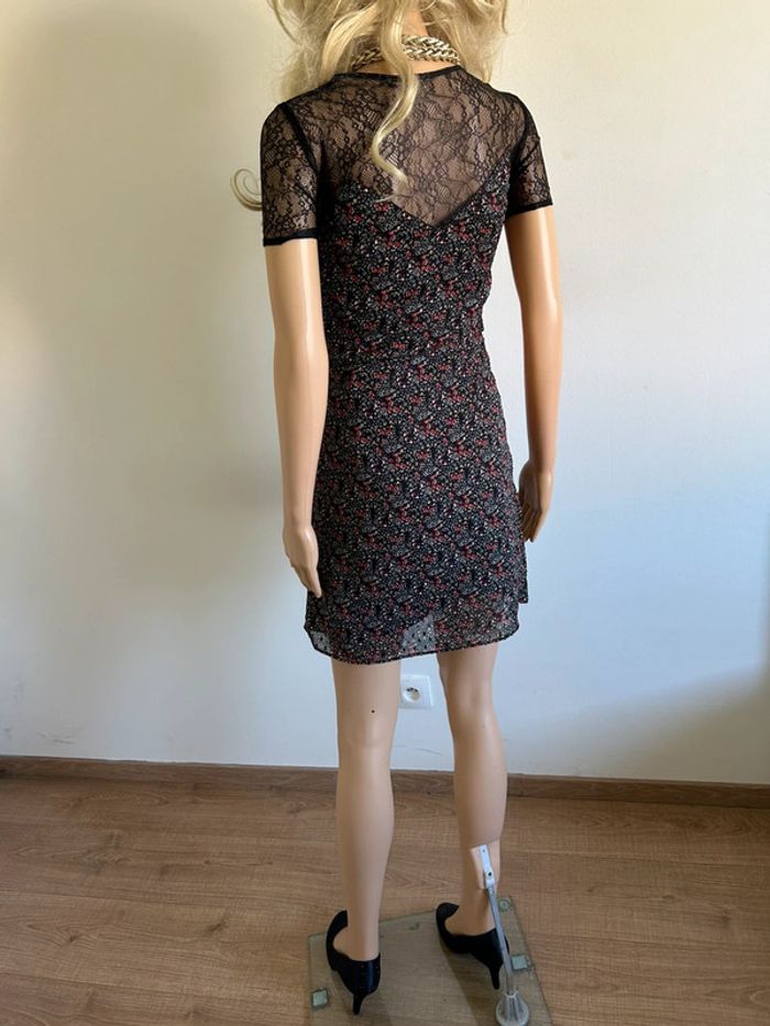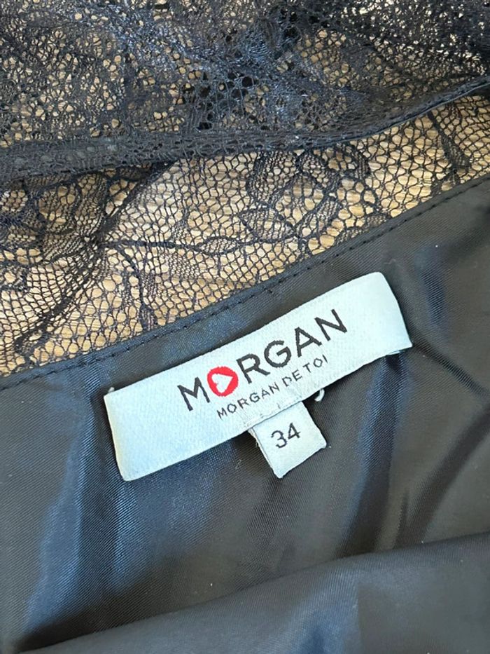 Jolie robe noire et imprimée à manches courtes, avec dentelle, de marque Morgan. Fermeture sur le côté. Taille 34. Portée une fois, elle est en excellent état. aisselle à aisselle 38 cms épaule à épaule 36 cms taille 34 cms longueur depuis épaule 86 cms Étiquette intérieure de composition coupée Le prix reste négociable dans la limite du raisonnable. Un petit cadeau dans le colis 🌸 (Boîte 12)