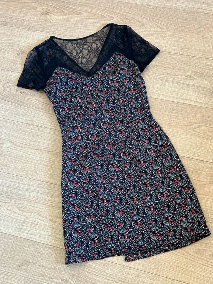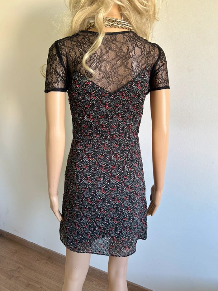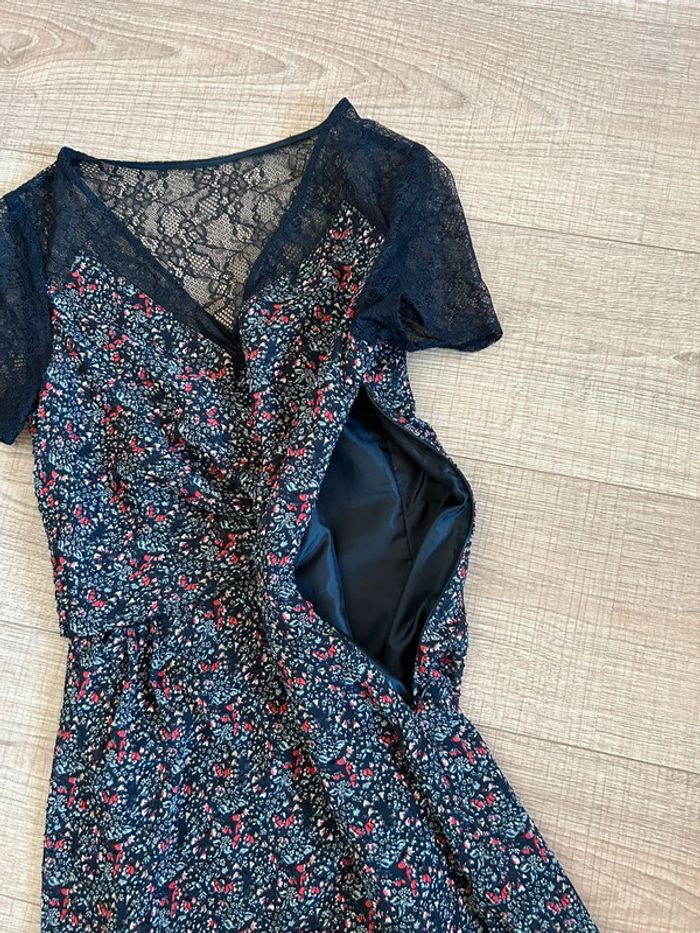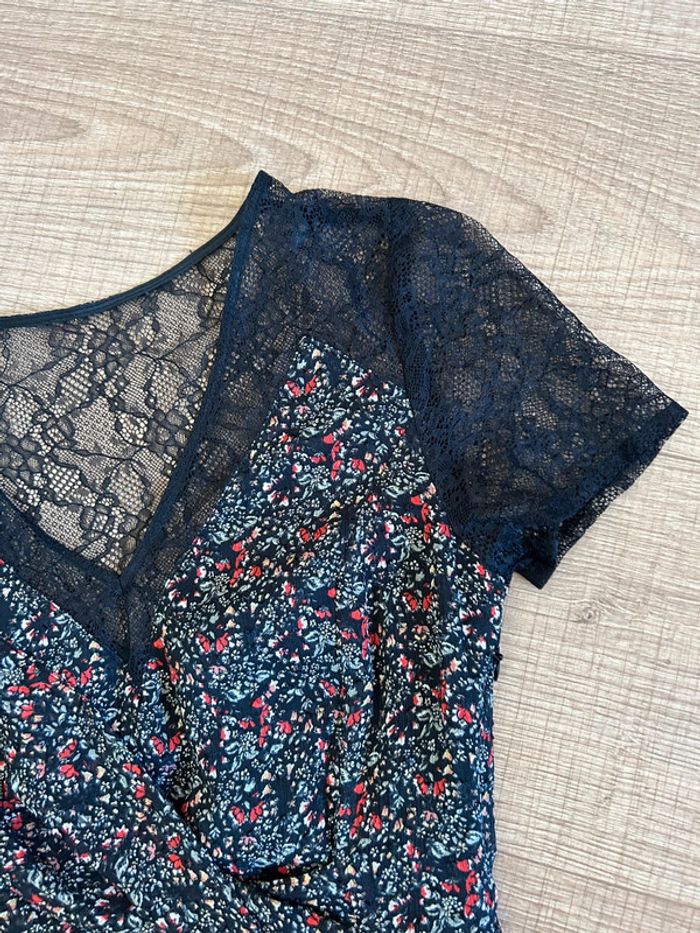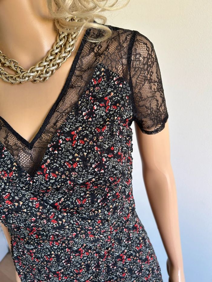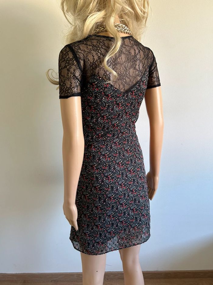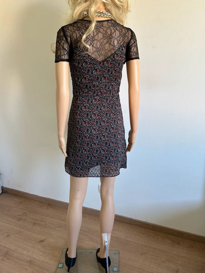 Jolie robe noire et imprimée à manches courtes, avec dentelle, de marque Morgan. Fermeture sur le côté. Taille 34. Portée une fois, elle est en excellent état. aisselle à aisselle 38 cms épaule à épaule 36 cms taille 34 cms longueur depuis épaule 86 cms Étiquette intérieure de composition coupée Le prix reste négociable dans la limite du raisonnable. Un petit cadeau dans le colis 🌸 (Boîte 12)