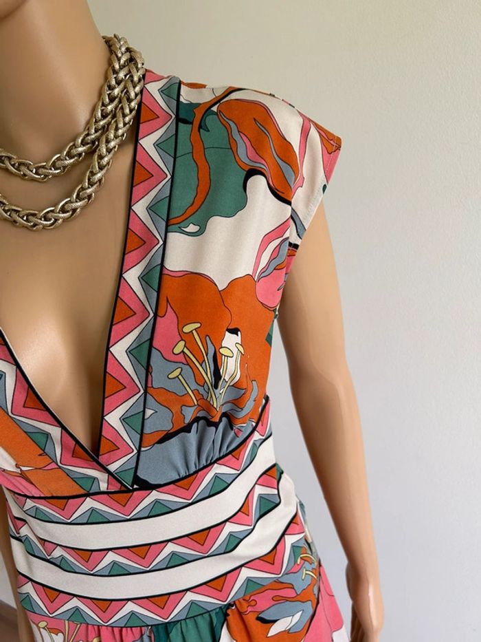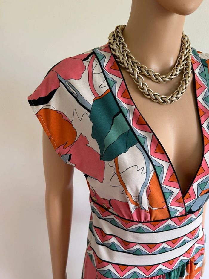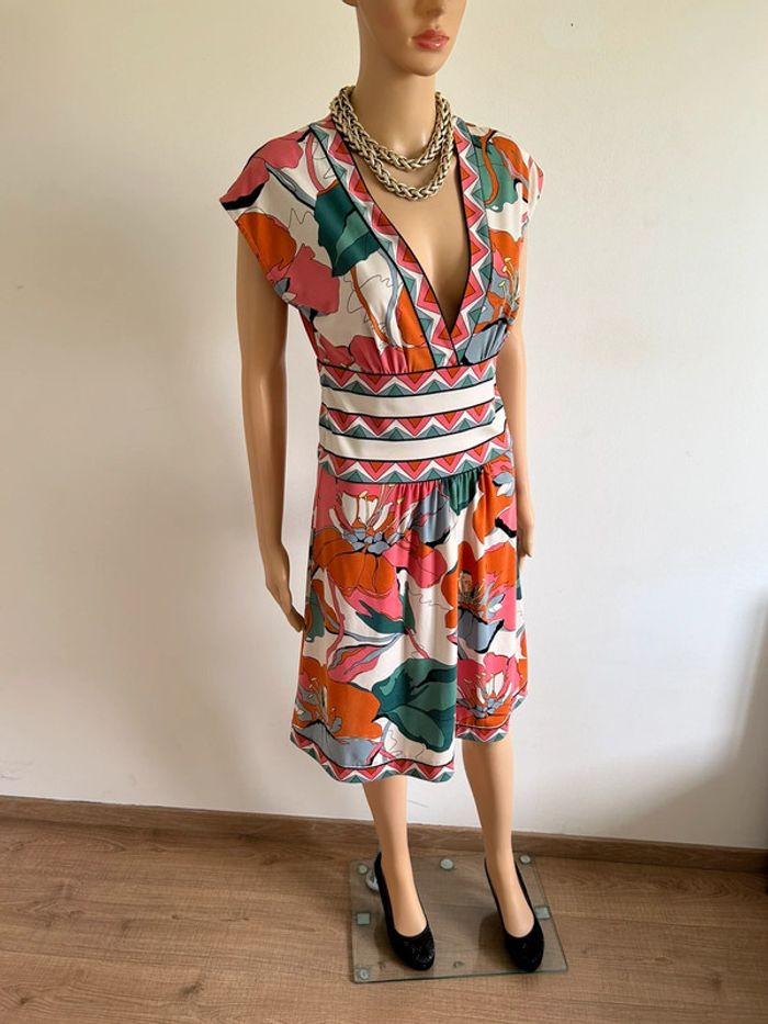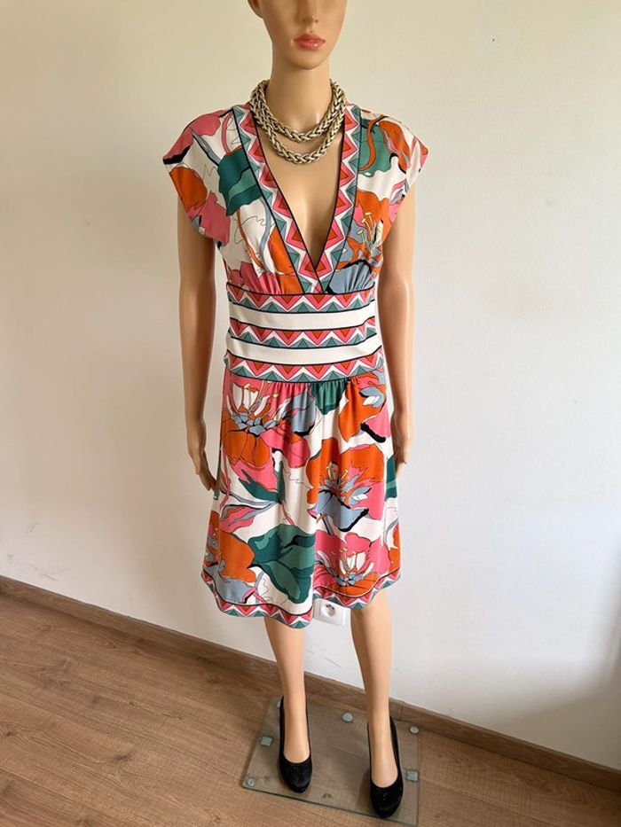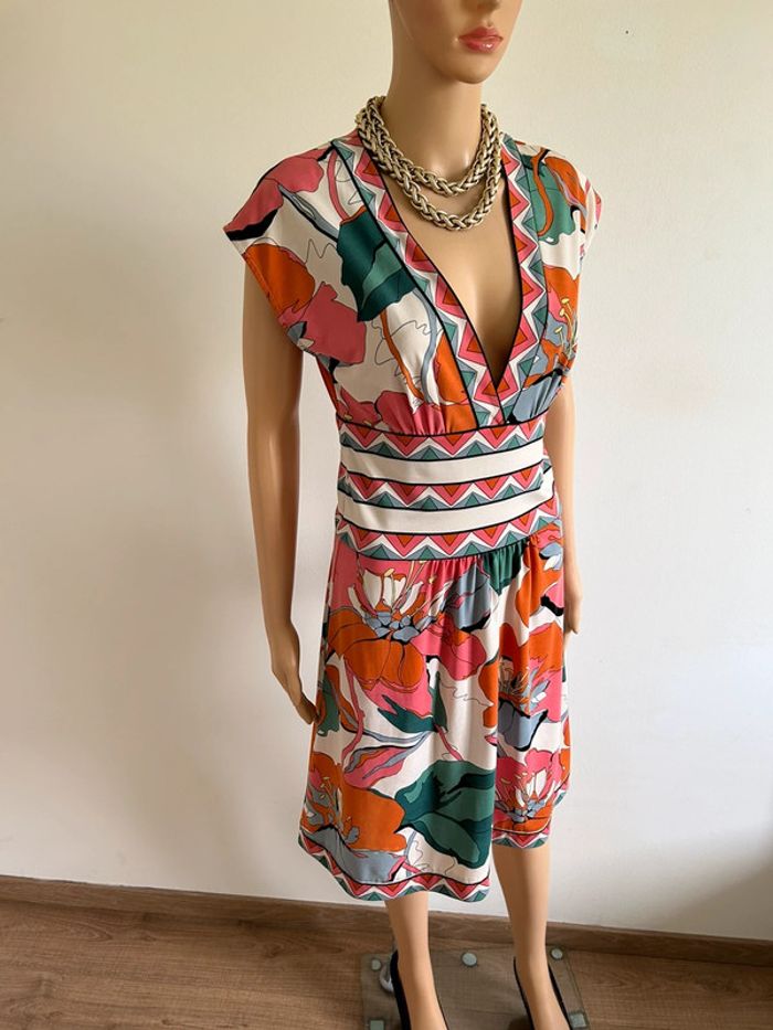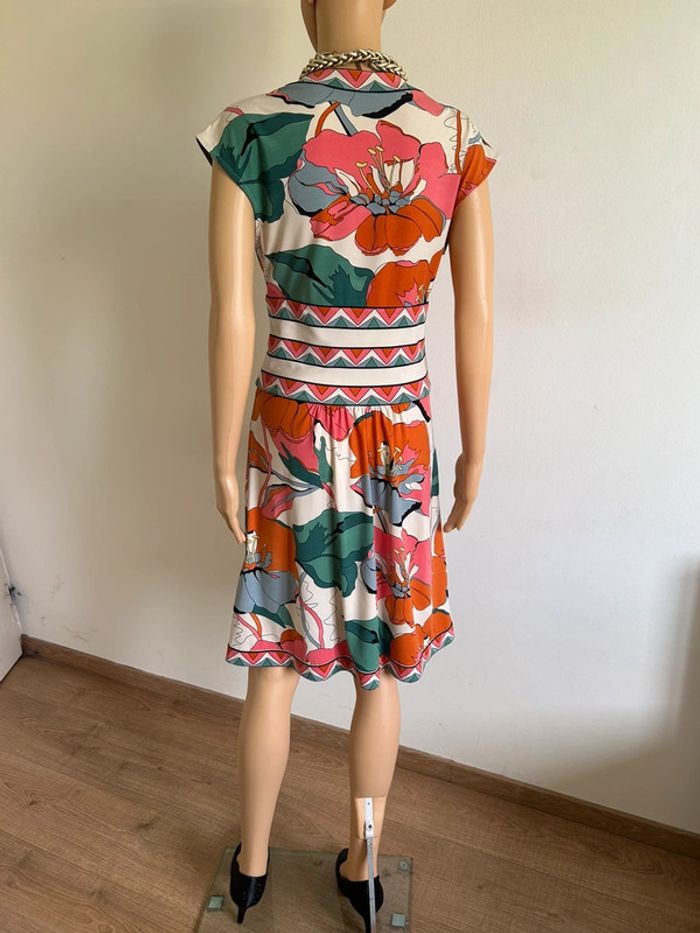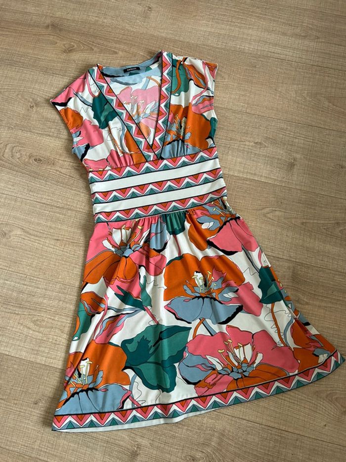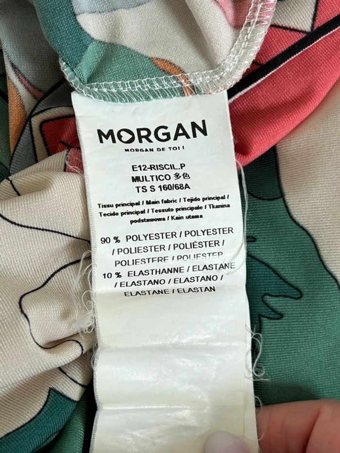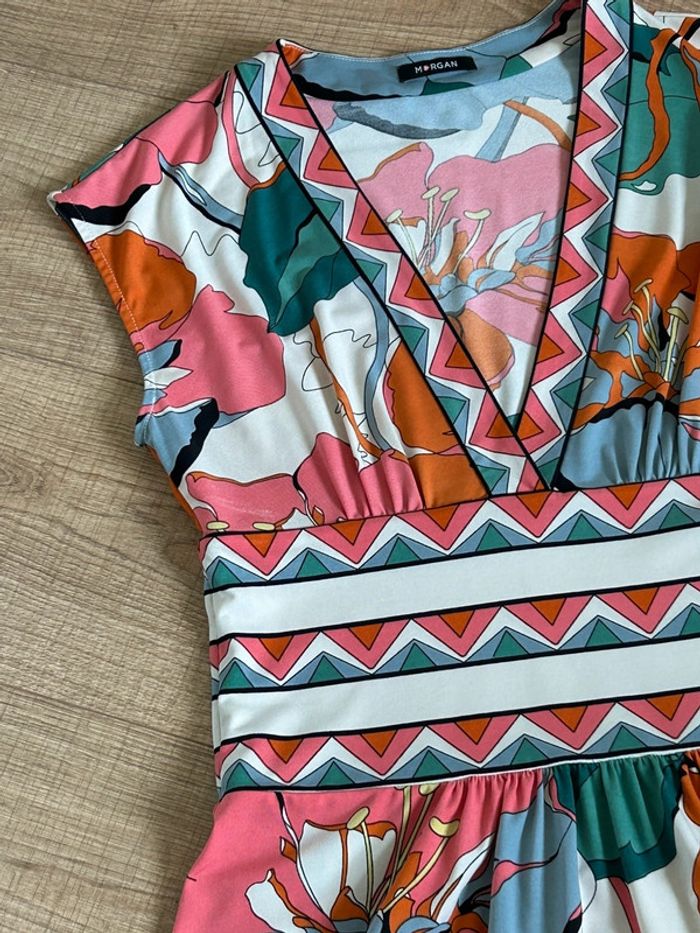 Jolie robe imprimée multicolore à manches courtes, de marque Morgan. Taille S. Portée quelques fois, en très bon état. aisselle à aisselle 42 cms à 47 cms taille 36 cms à 40 cms longueur depuis épaule 95 cms Le tissu est extensible 90% polyester et 10% elasthanne Le prix reste négociable dans la limite du raisonnable. Un petit cadeau dans le colis 🌸 (Boîte 31)