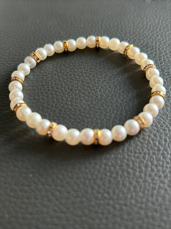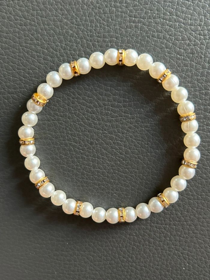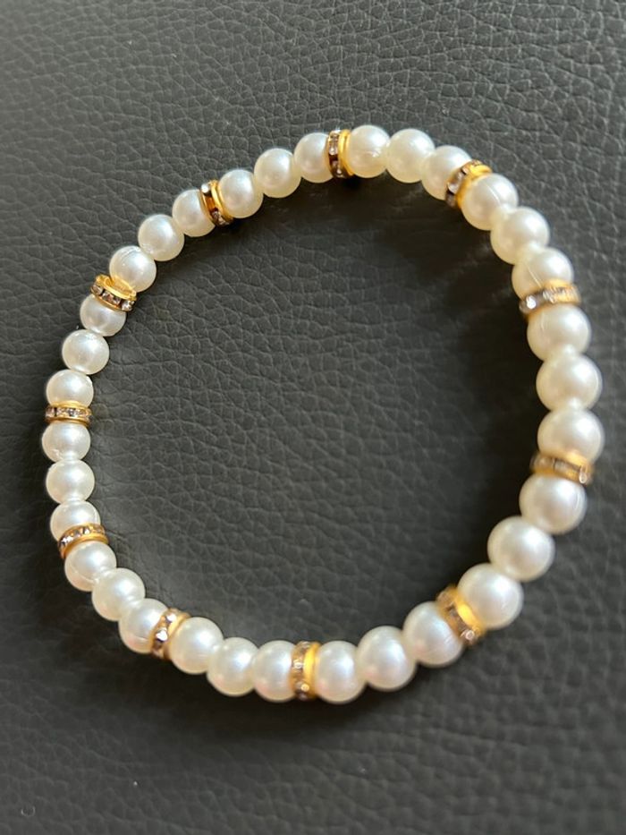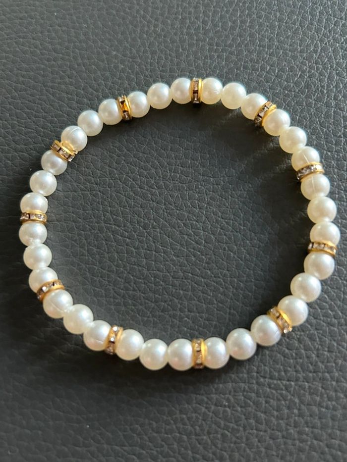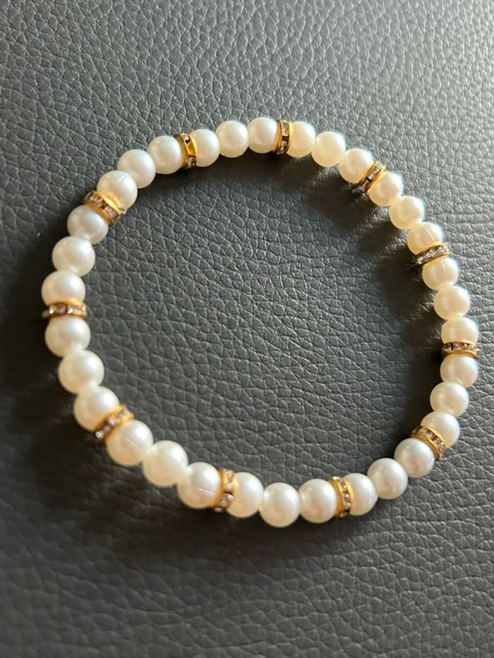 Joli bracelet crème et doré en perles. Taille unique. Jamais porté, état neuf.