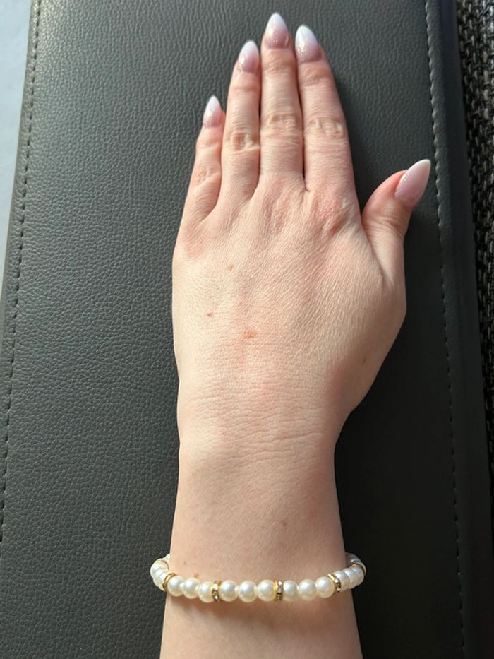 Bracelet beige et doré en perles taille unique jamais porté - photo numéro 5