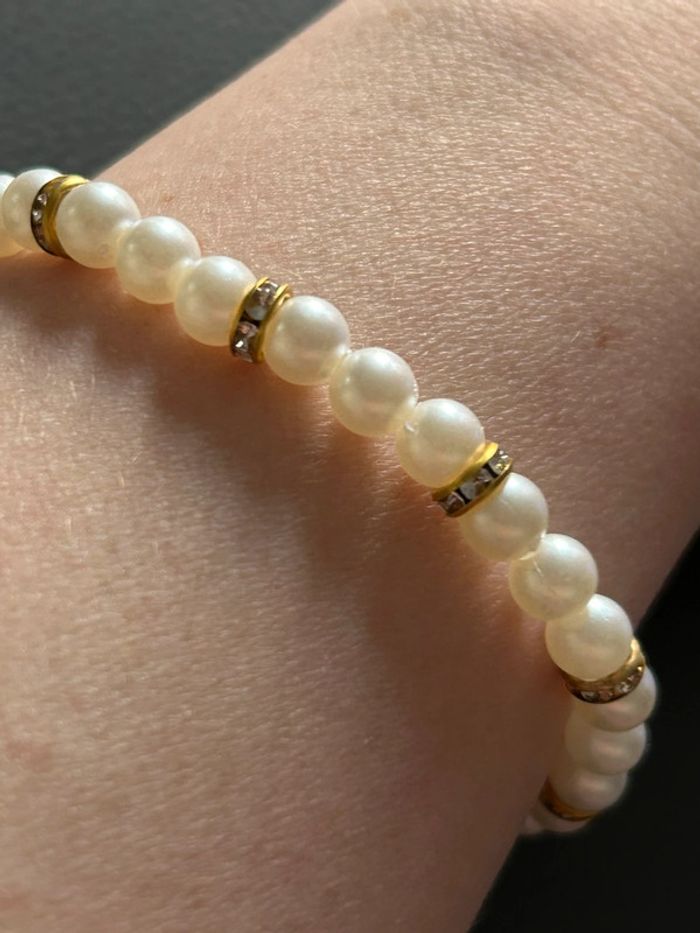 Bracelet beige et doré en perles taille unique jamais porté - photo numéro 7