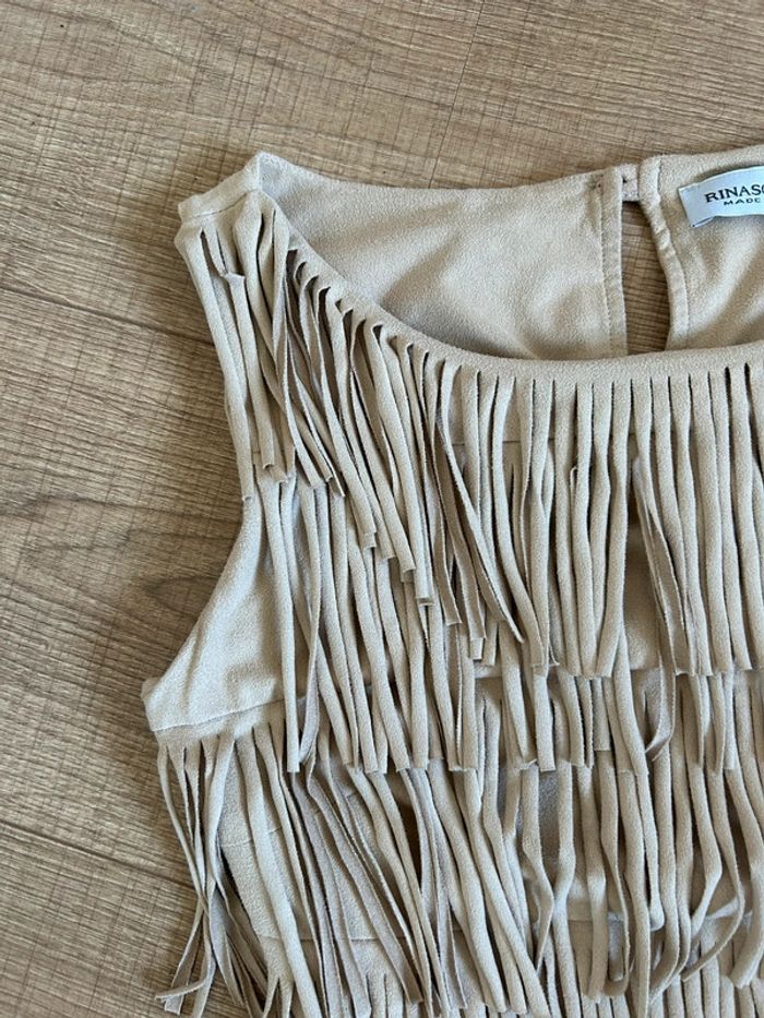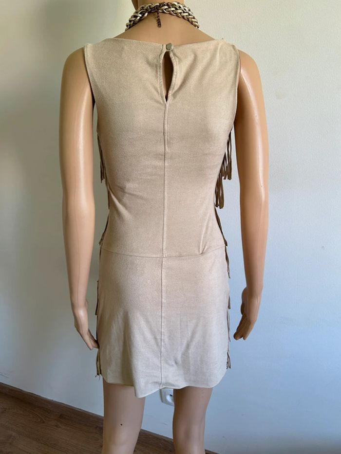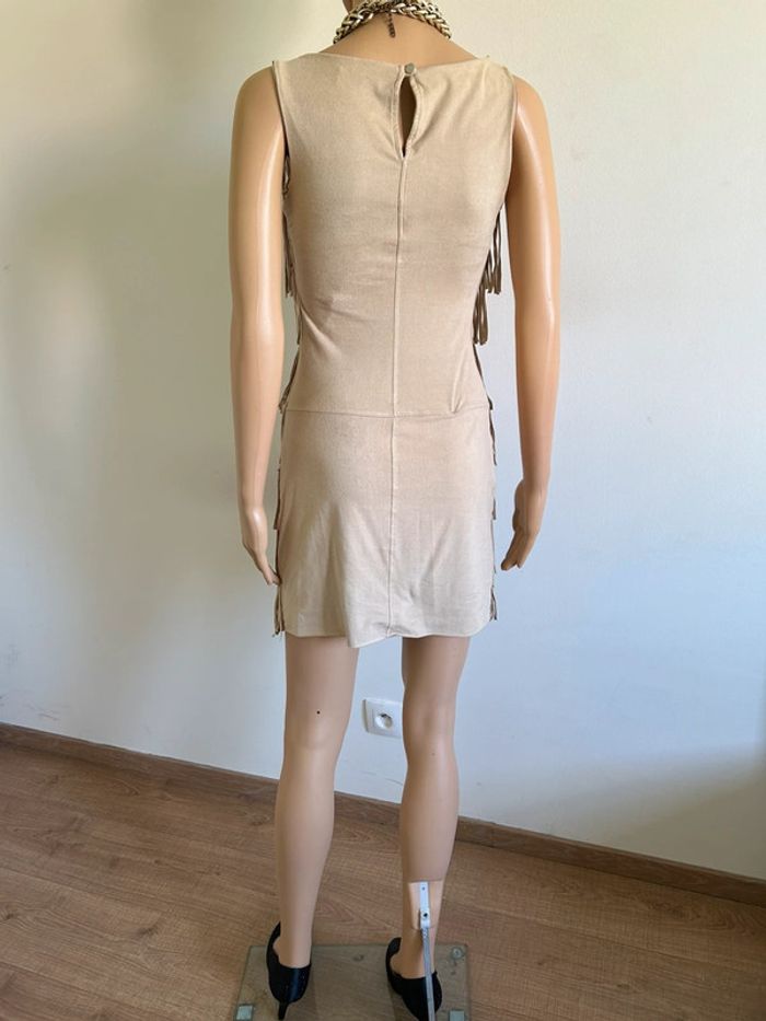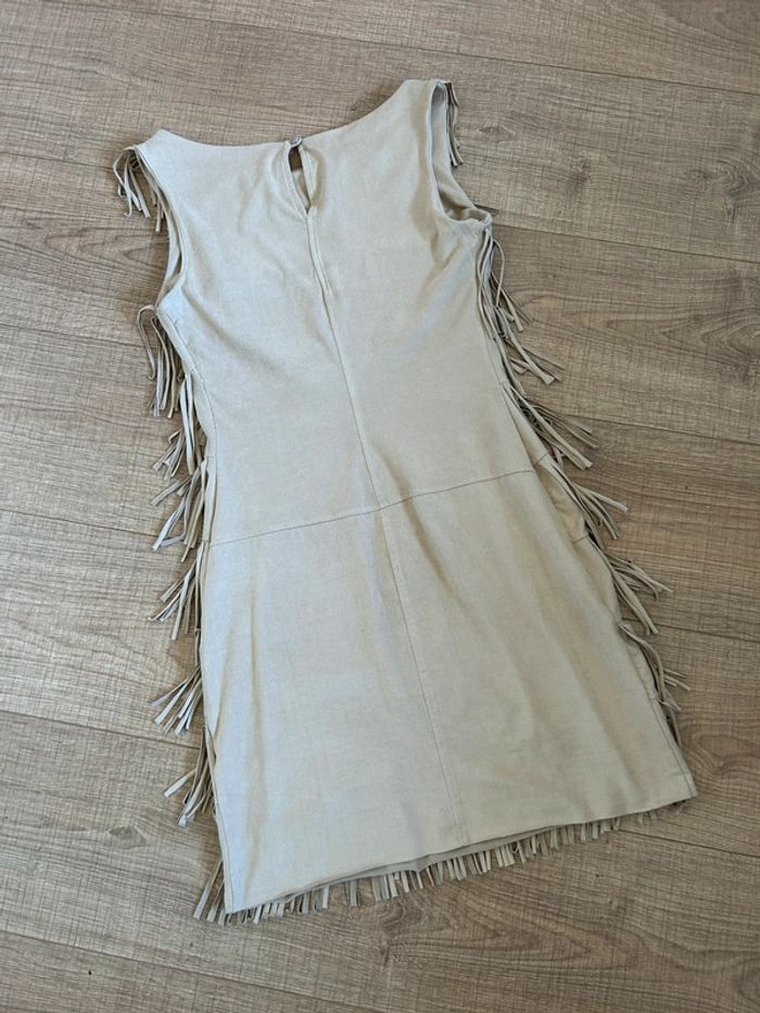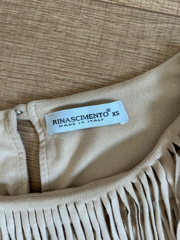 Jolie robe beige en suédine sans manches, avec franges sur le devant, de marque Rinascimento. Taille XS. Portée quelques fois, en très bon état. aisselle à aisselle 37 cms à 42 cms taille 31 cms à 37 cms longueur depuis épaule 80 cms Le tissu est extensible Étiquette intérieure de composition coupée Le prix reste négociable dans la limite du raisonnable. Un petit cadeau dans le colis 🌸 (Boîte 10)