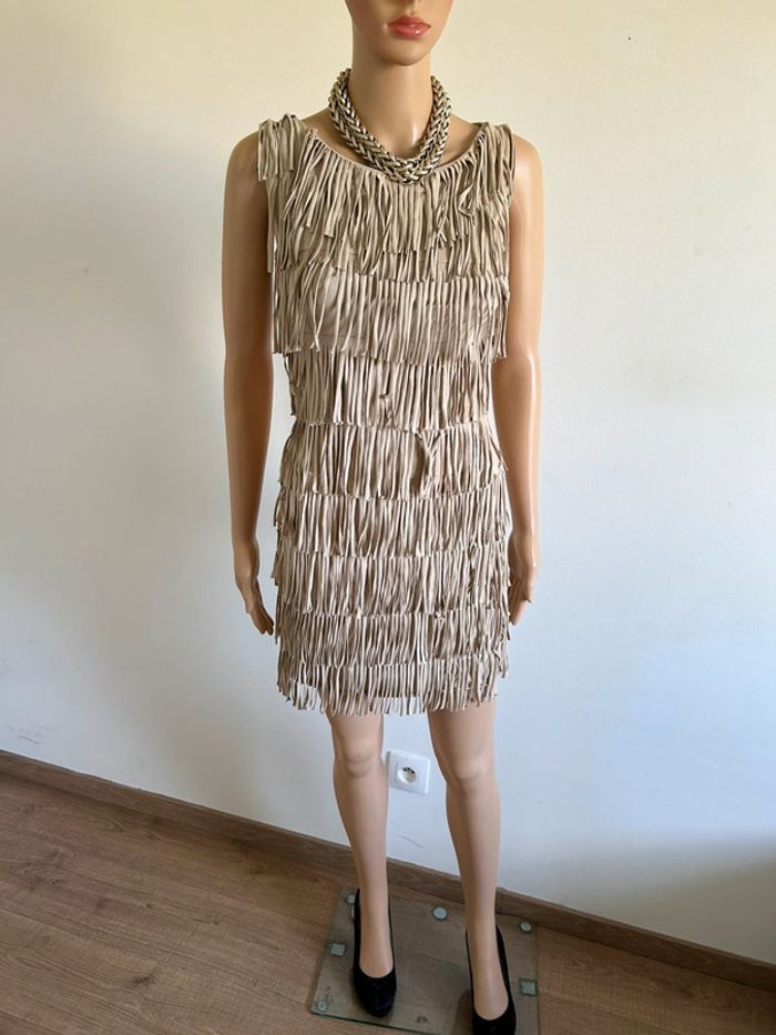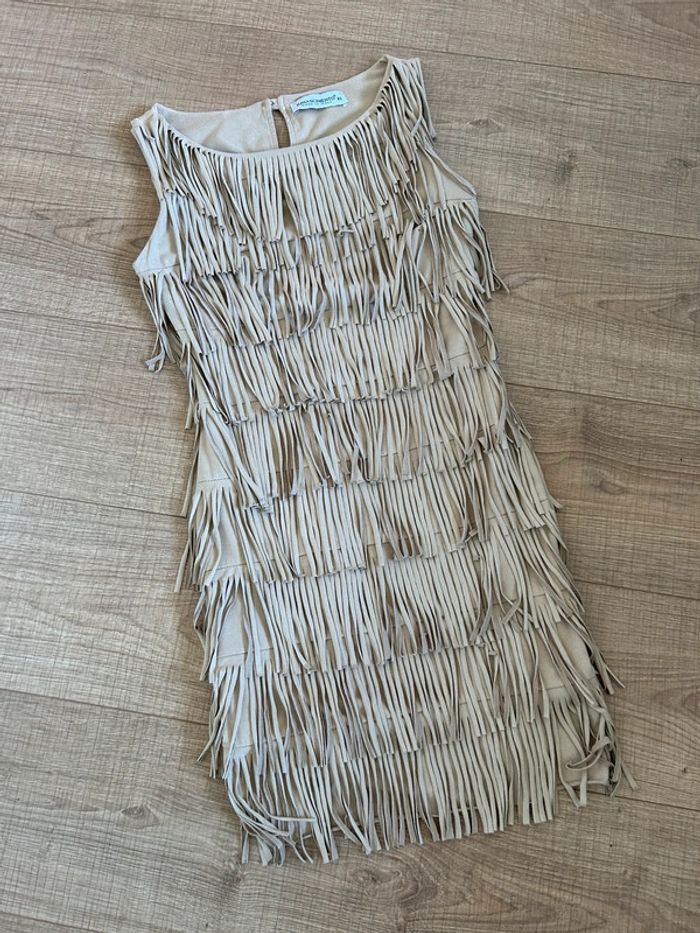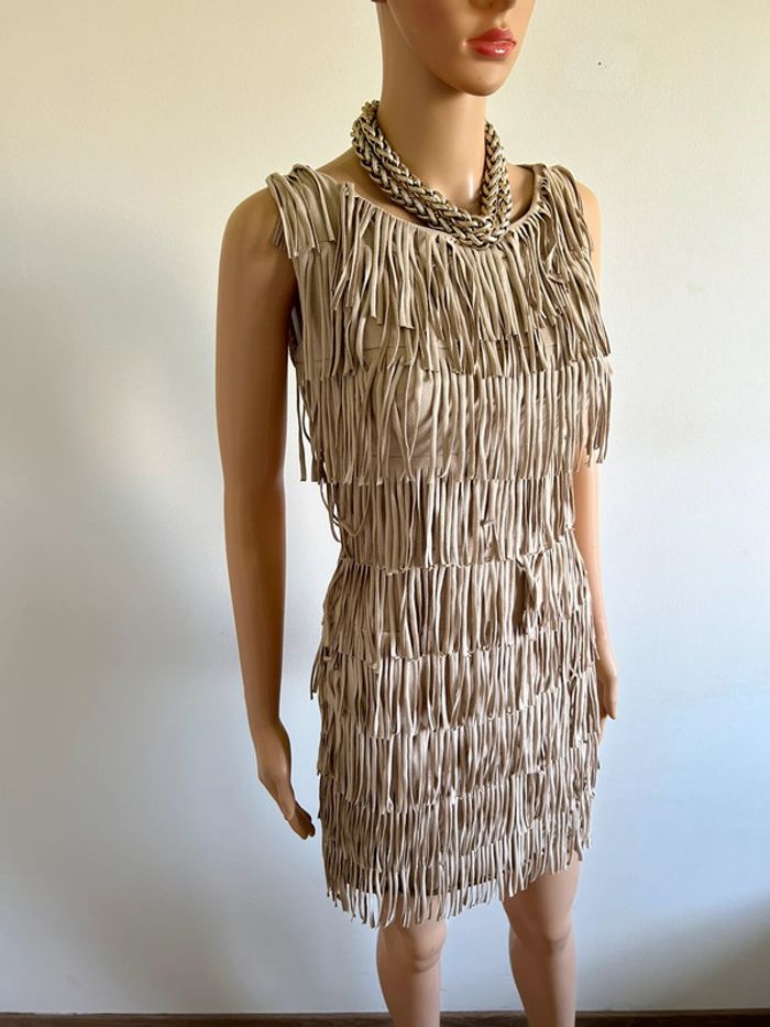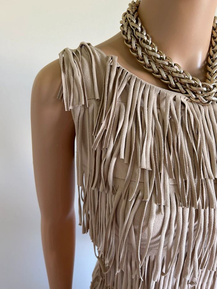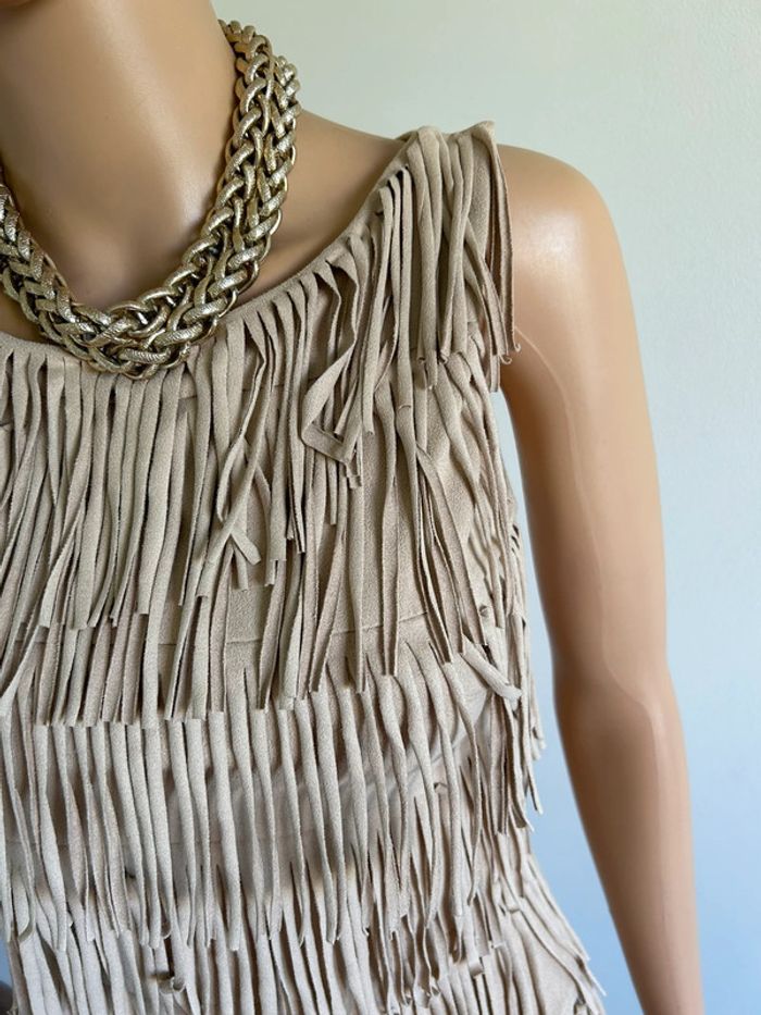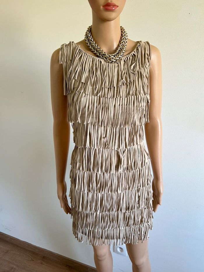 Jolie robe beige en suédine sans manches, avec franges sur le devant, de marque Rinascimento. Taille XS. Portée quelques fois, en très bon état. aisselle à aisselle 37 cms à 42 cms taille 31 cms à 37 cms longueur depuis épaule 80 cms Le tissu est extensible Étiquette intérieure de composition coupée Le prix reste négociable dans la limite du raisonnable. Un petit cadeau dans le colis 🌸 (Boîte 10)
