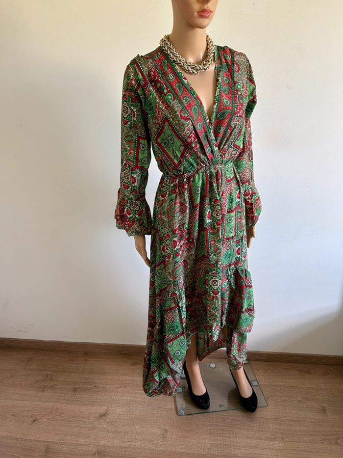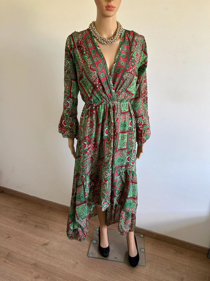 Robe longue imprimée neuve en soie Corte Hindu taille unique - photo numéro 4