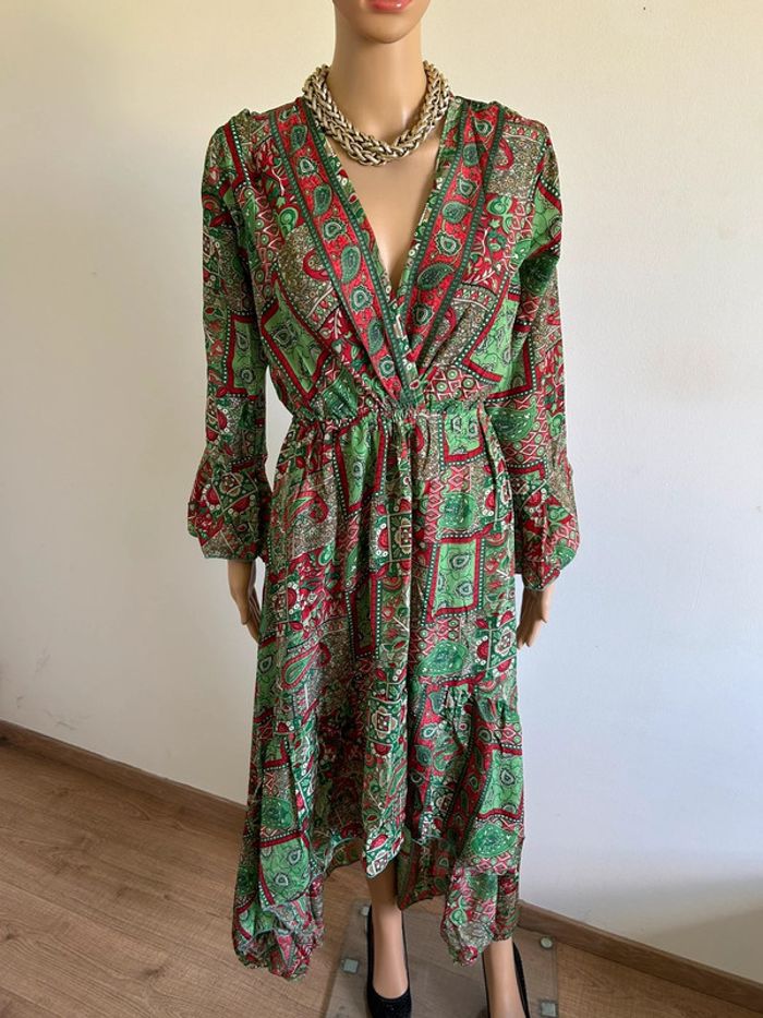 Robe longue imprimée neuve en soie Corte Hindu taille unique - photo numéro 5