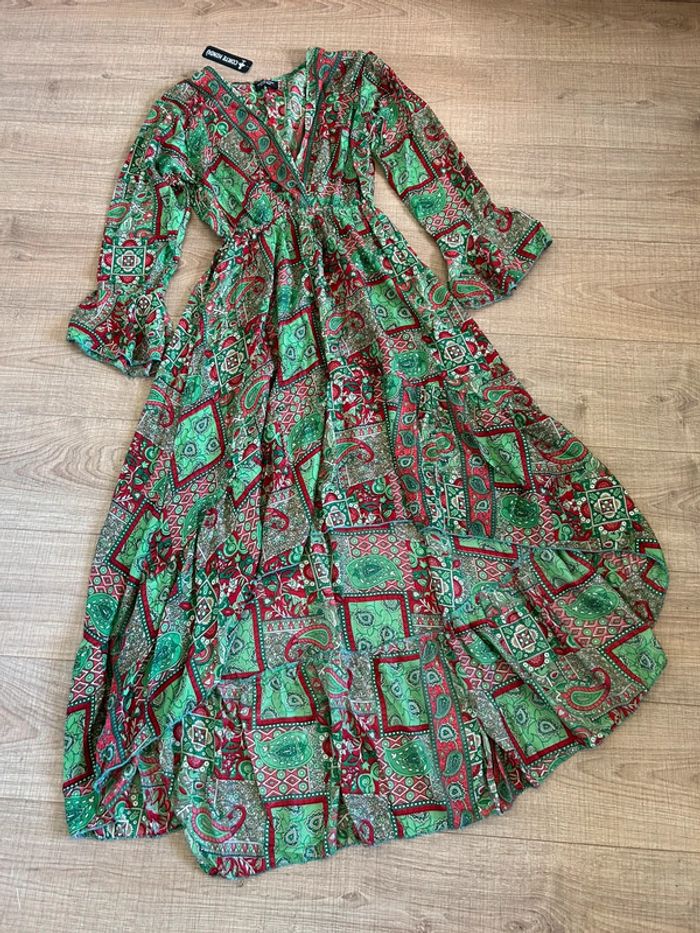 Robe longue imprimée neuve en soie Corte Hindu taille unique - photo numéro 14