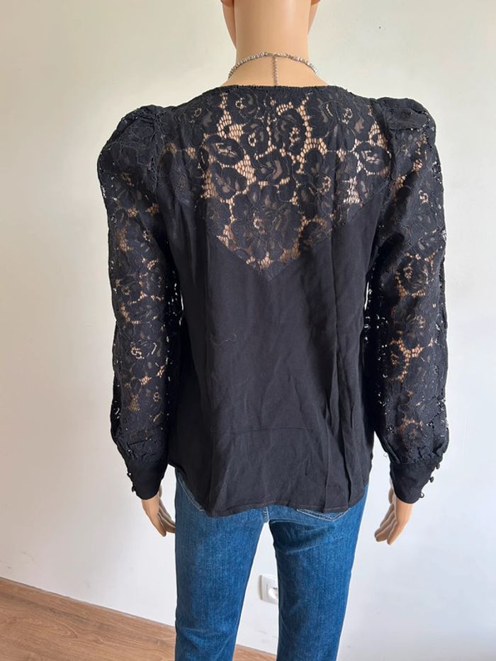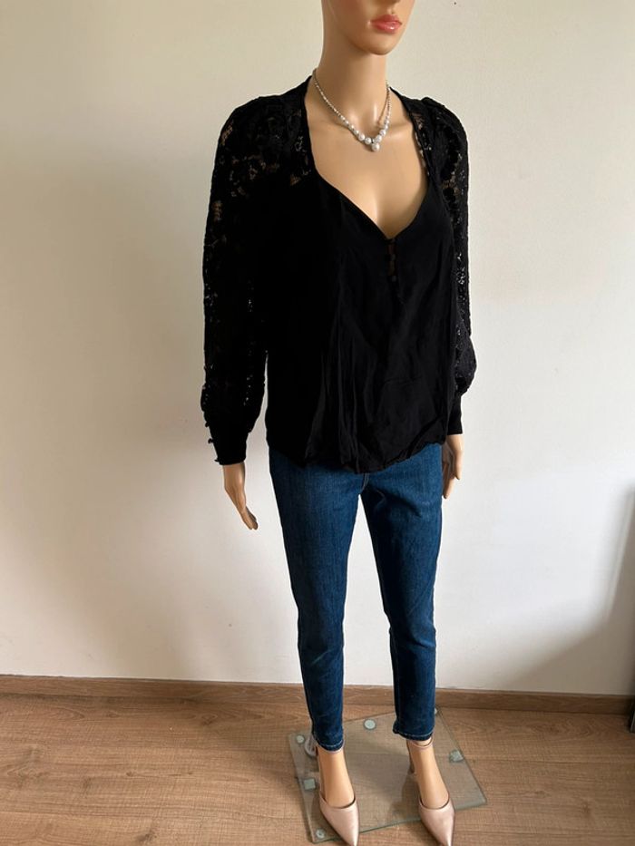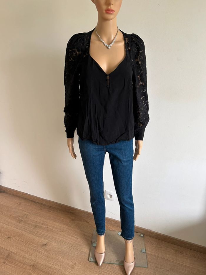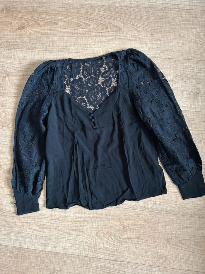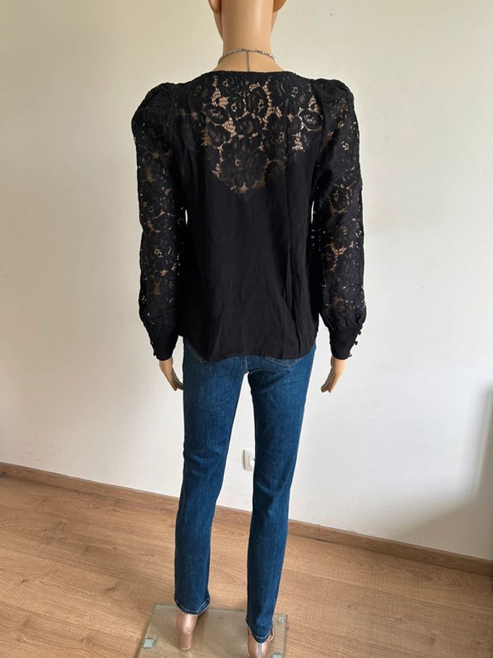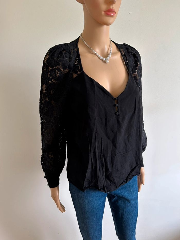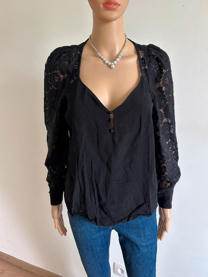 Blouse noire avec dentelle Naf Naf taille 36 bon état (défaut)