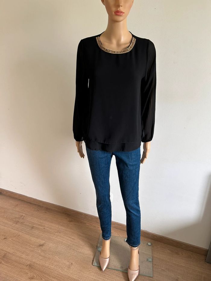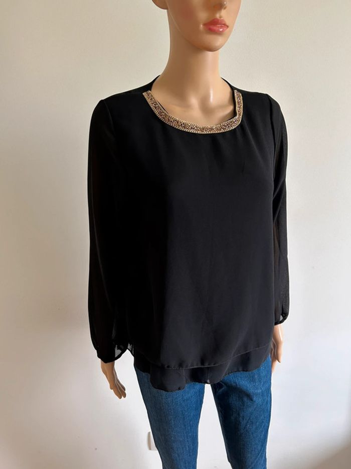 Blouse noire et dorée à manches longues taille unique excellent état - photo numéro 1