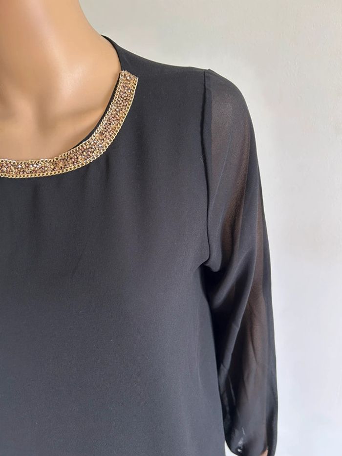 Blouse noire et dorée à manches longues taille unique excellent état - photo numéro 10