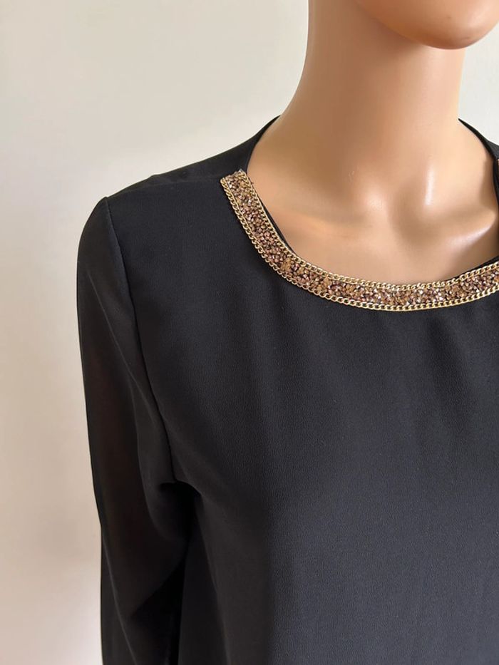 Blouse noire et dorée à manches longues taille unique excellent état - photo numéro 3