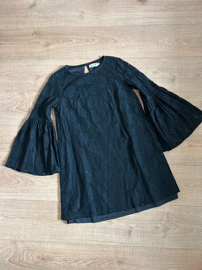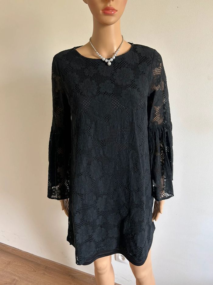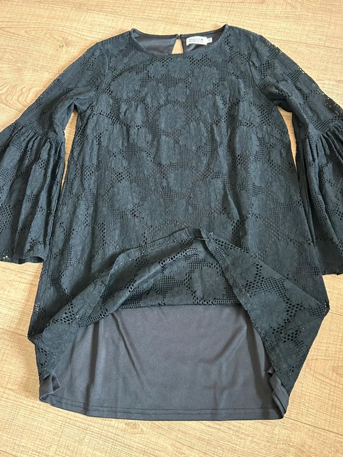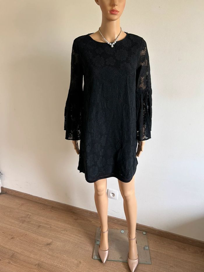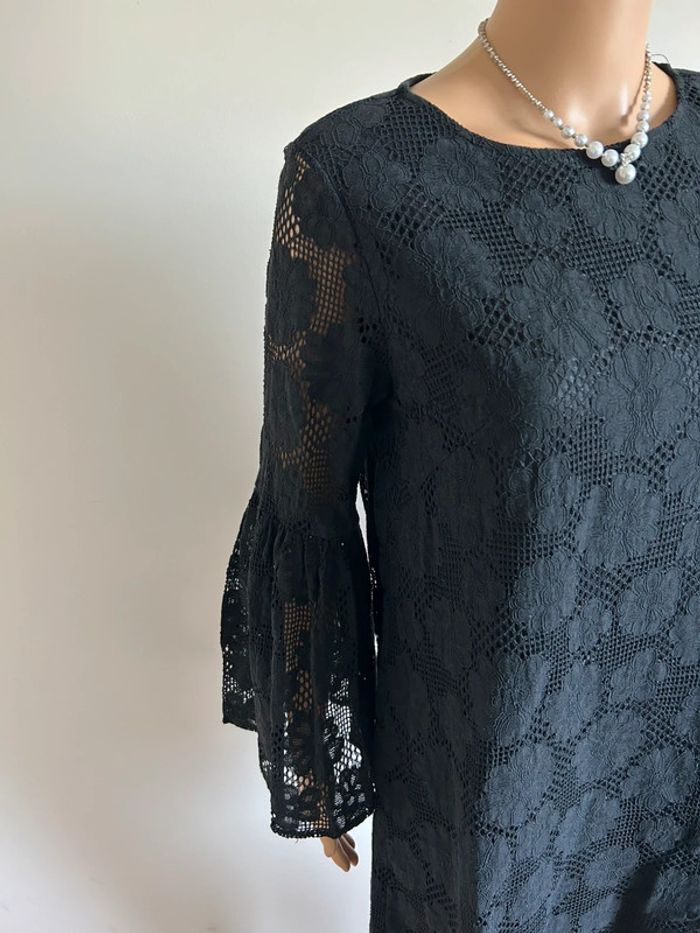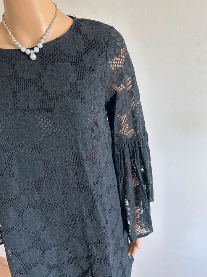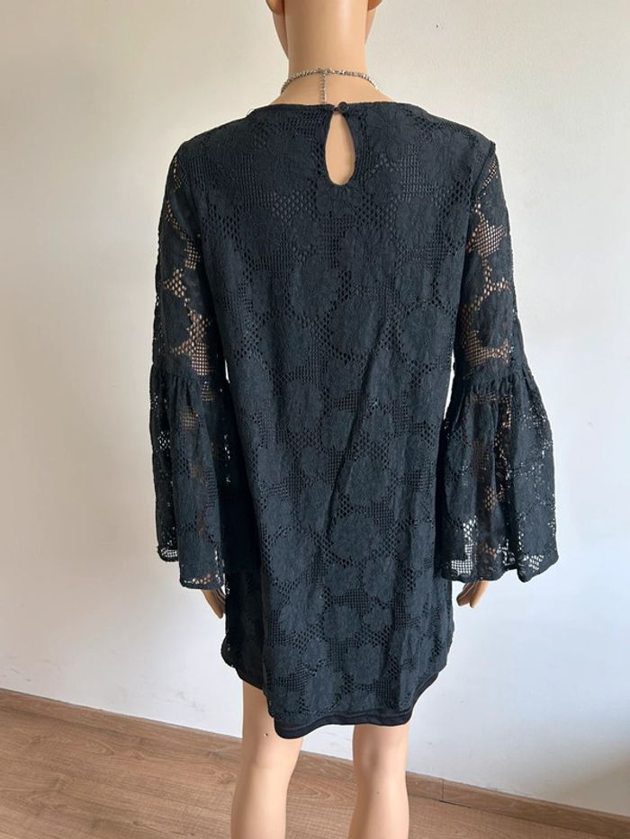Jolie robe noire entièrement en dentelle, de marque Molly Bracken. Taille XS. Jamais portée, état neuf. aisselle à aisselle 45 cms épaule à épaule 37 cms longueur manches 54 cms taille 48 cms longueur depuis épaule 81 cms 95% polyester et 5% elasthanne Le prix reste négociable dans la limite du raisonnable. Un petit cadeau dans le colis 🌸
