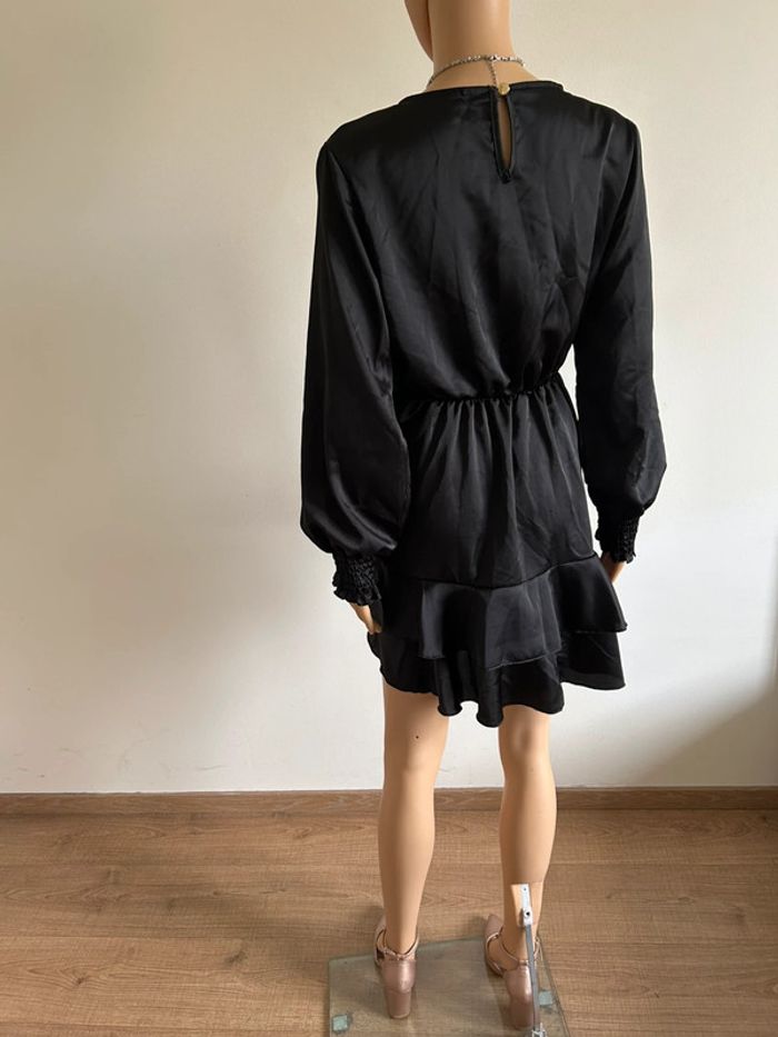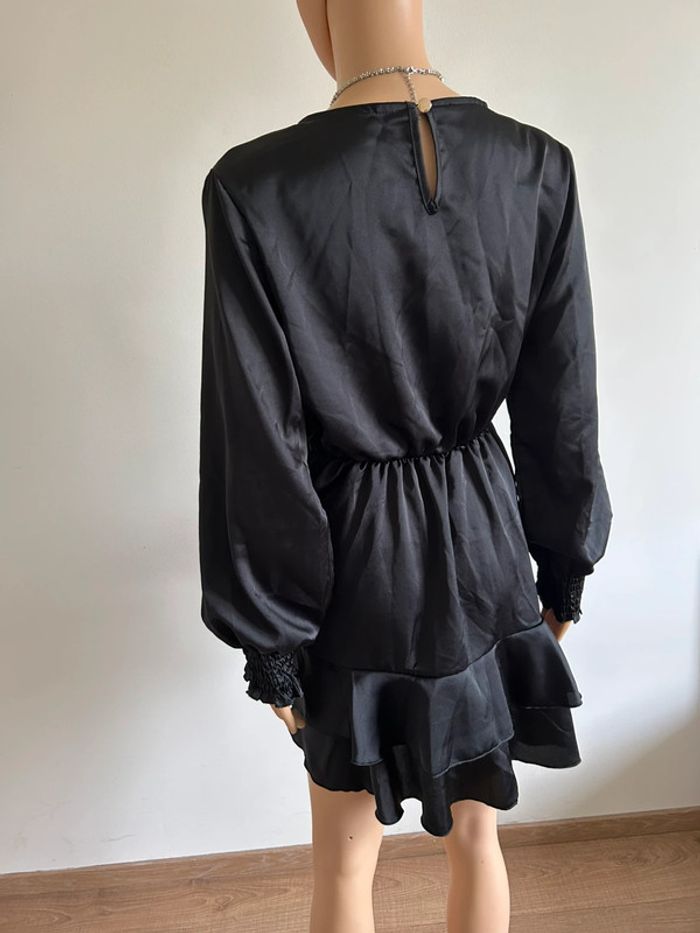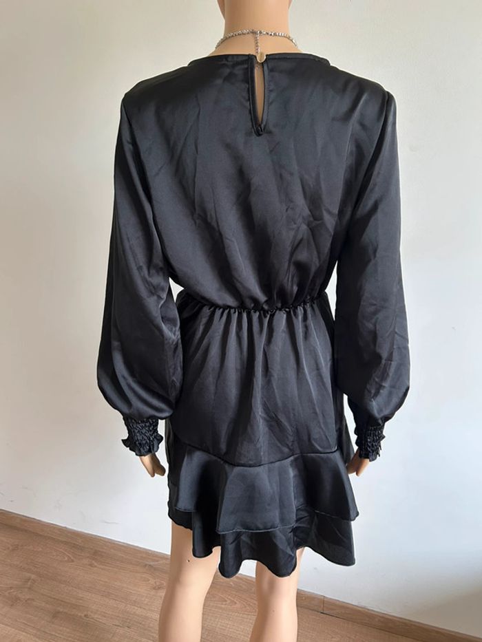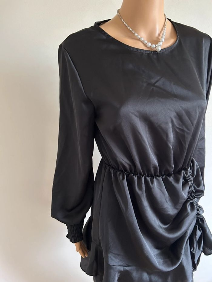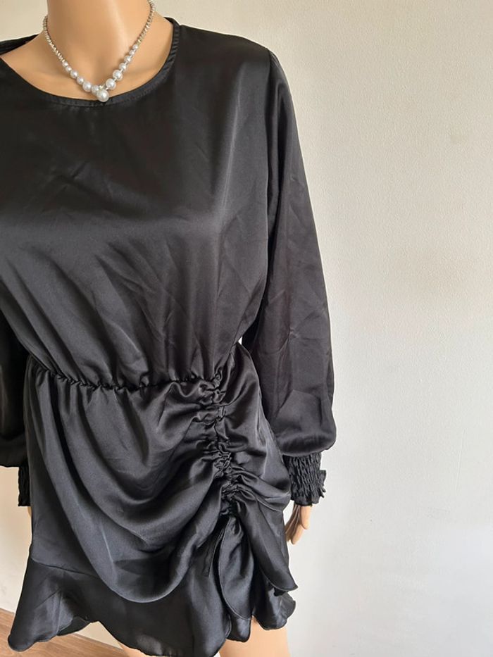 Robe noire satinée à manches longues Made in Italy taille unique jamais portée - photo numéro 3