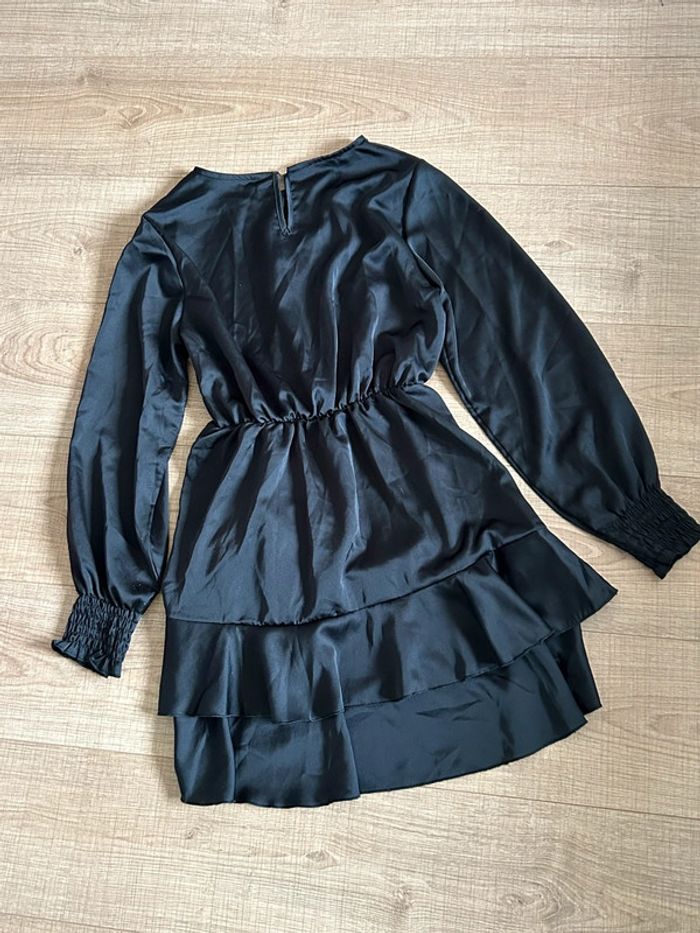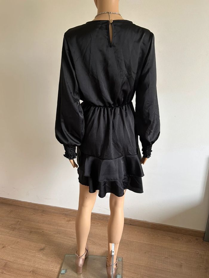 Robe noire satinée à manches longues Made in Italy taille unique jamais portée - photo numéro 5