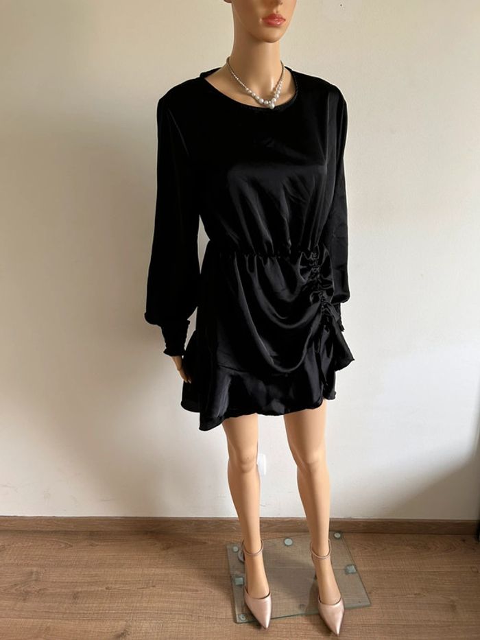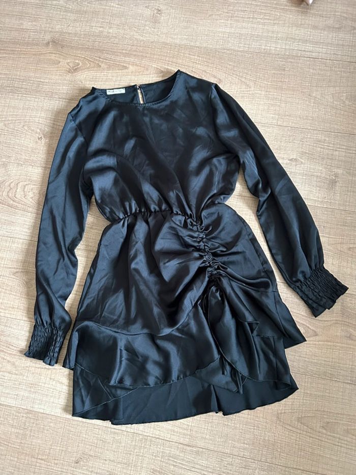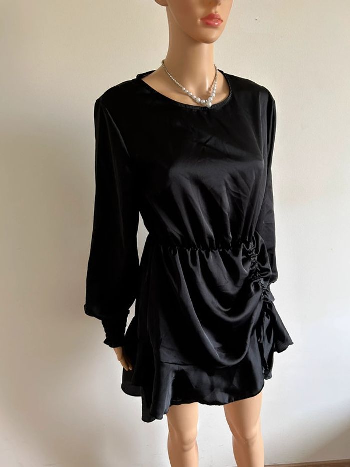 Magnifique robe noire satinée à manches longues, de marque Made in Italy. Taille unique qui convient jusqu’au 38. Jamais portée, état neuf. aisselle à aisselle 48 cms épaule à épaule 39 cms longueur manches 61 cms taille 30 cms à 50 cms longueur depuis épaule 79 cms à 85 cms La taille est extensible 100% polyester Le prix reste négociable dans la limite du raisonnable. Un petit cadeau dans le colis 🌸 (Boîte 50)