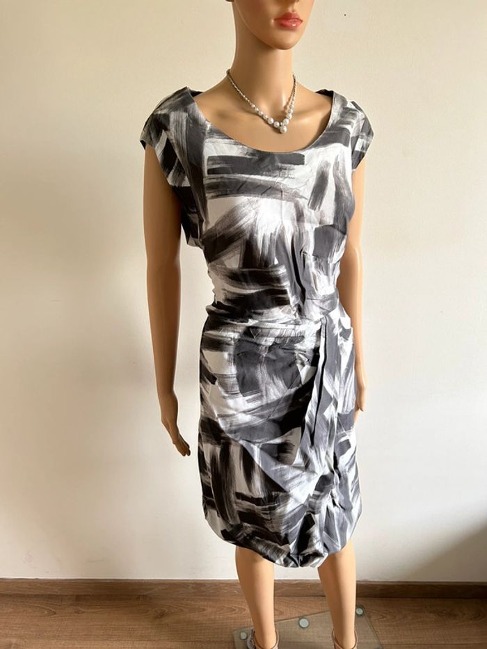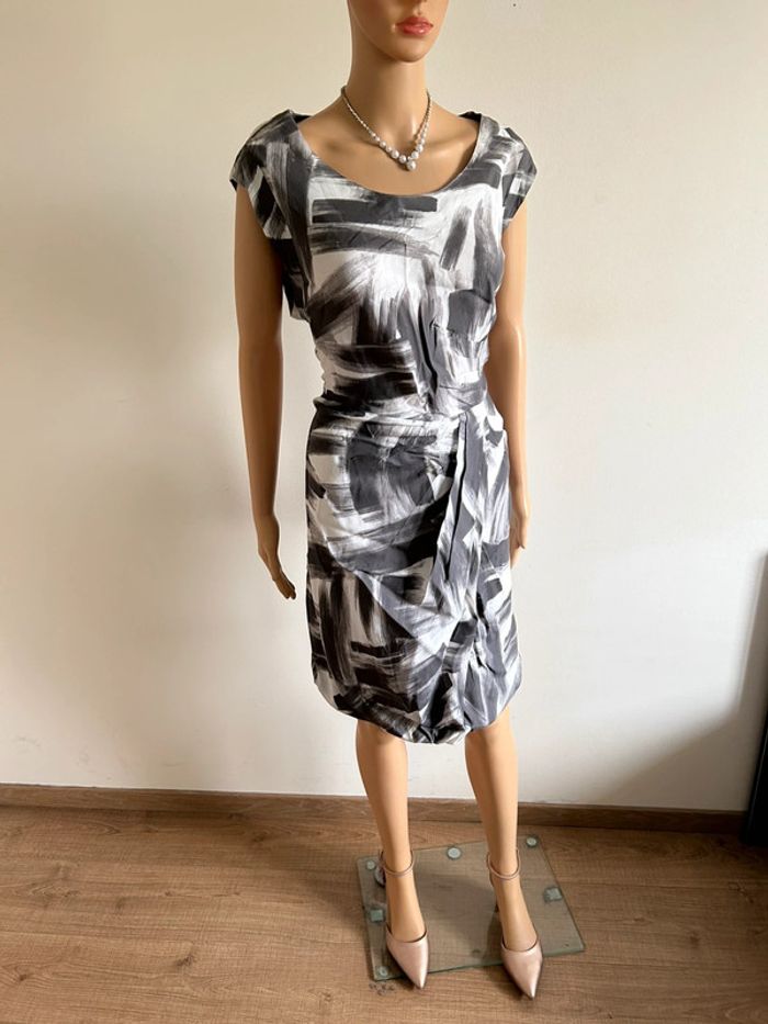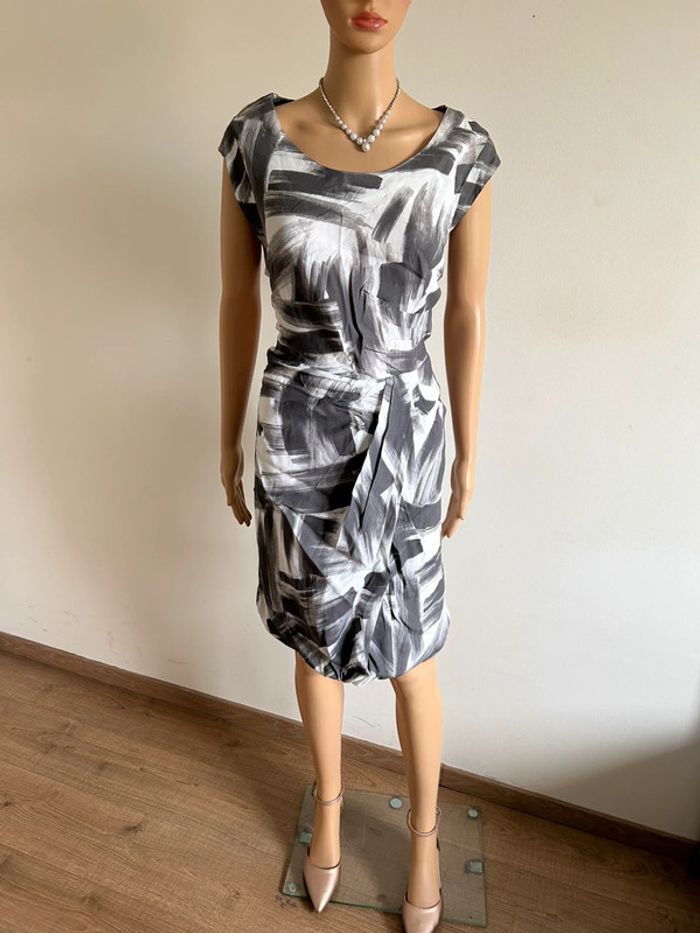 Robe grise et blanche à manches courtes Jacqueline Riu taille 46 jamais portée - photo numéro 1