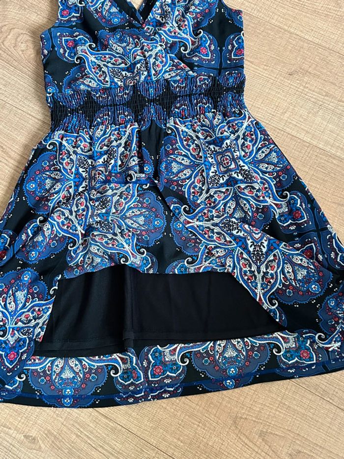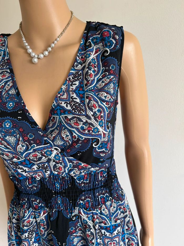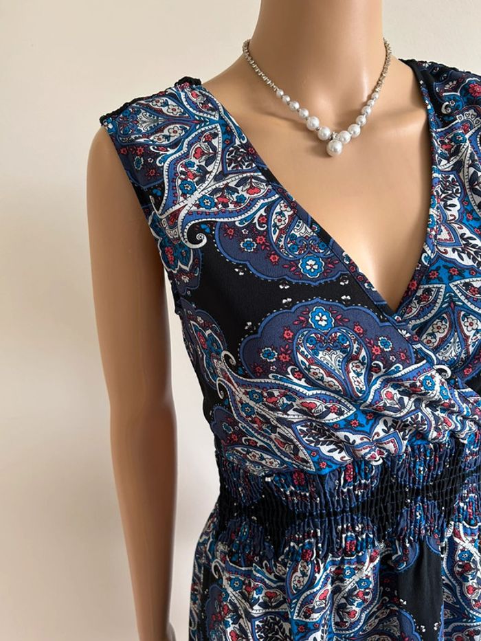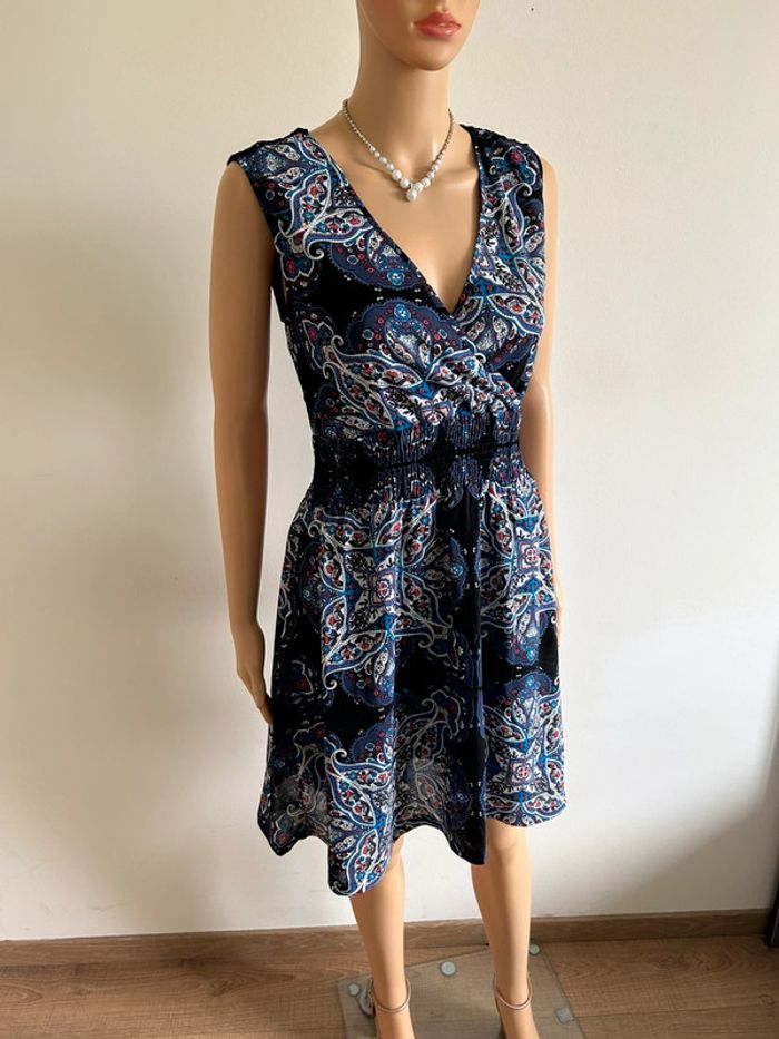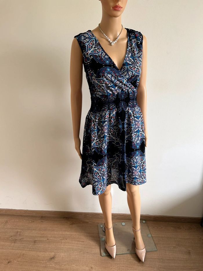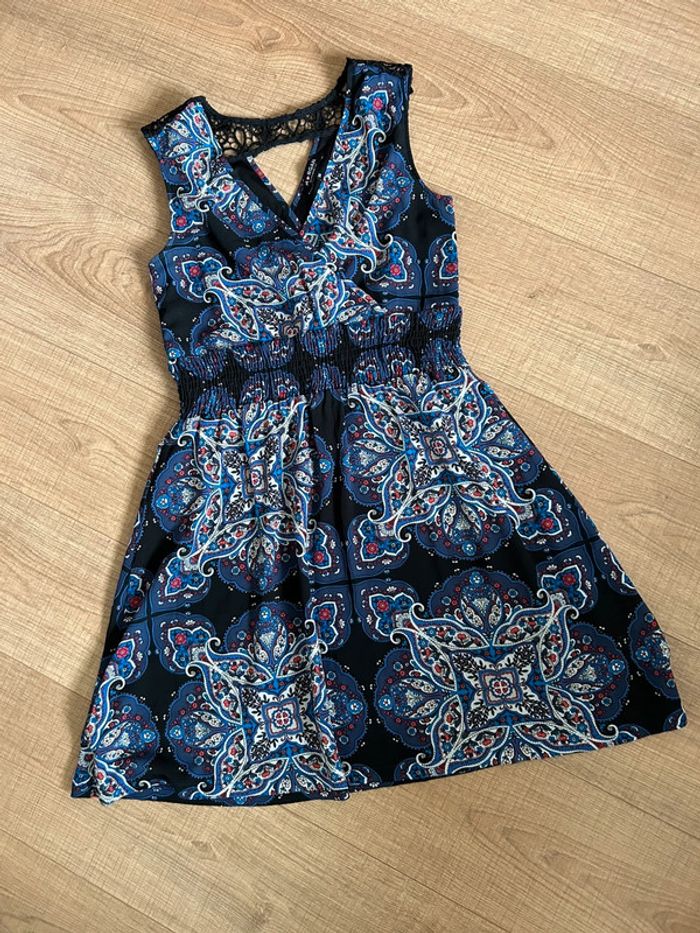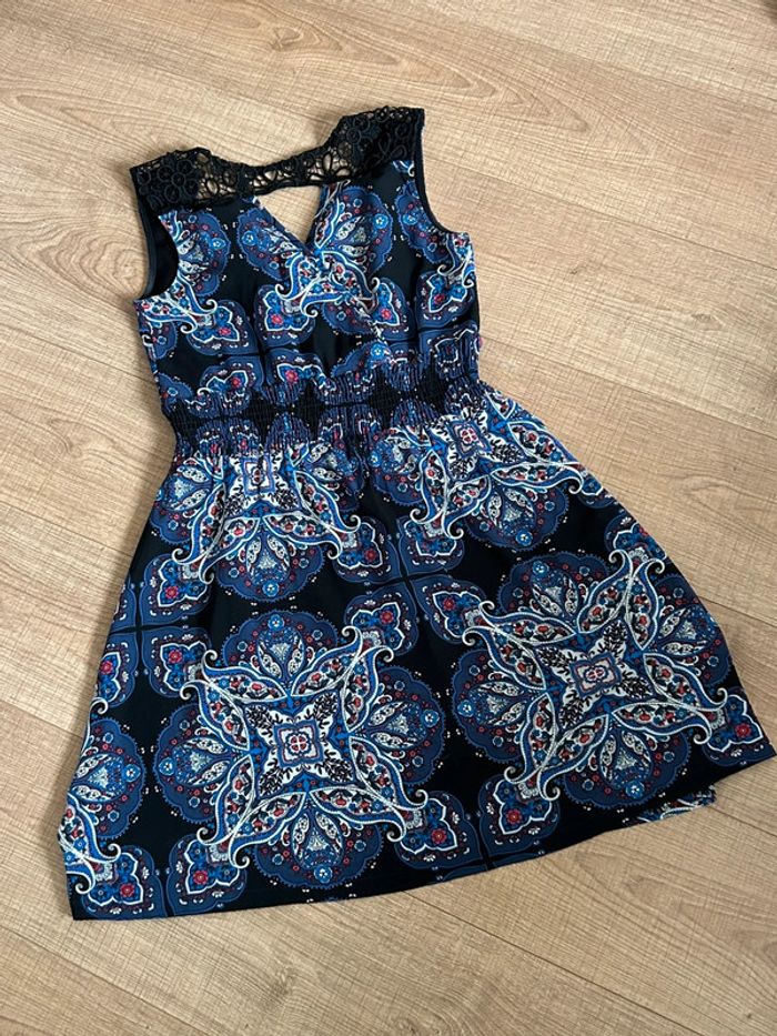 Jolie robe imprimée sans manches, avec dentelle, de marque Morgan. Taille 36. Jamais portée, état neuf. aisselle à aisselle 43 cms taille 37 cms et plus longueur depuis épaule 89 cms La taille est extensible 100% polyester Le prix reste négociable dans la limite du raisonnable. Un petit cadeau dans le colis 🌸 (Boîte 32)