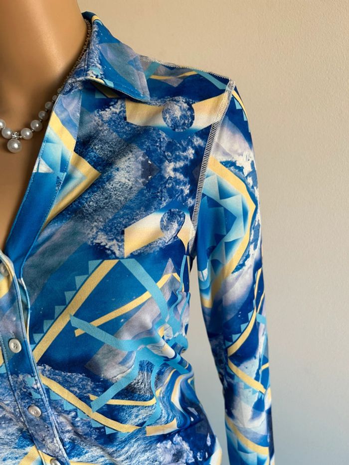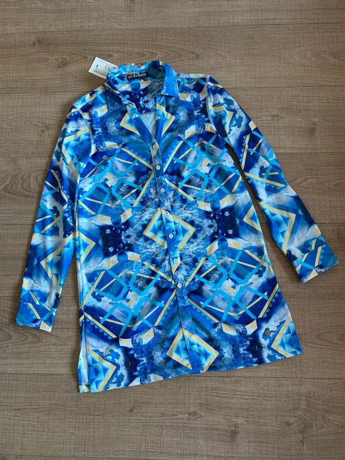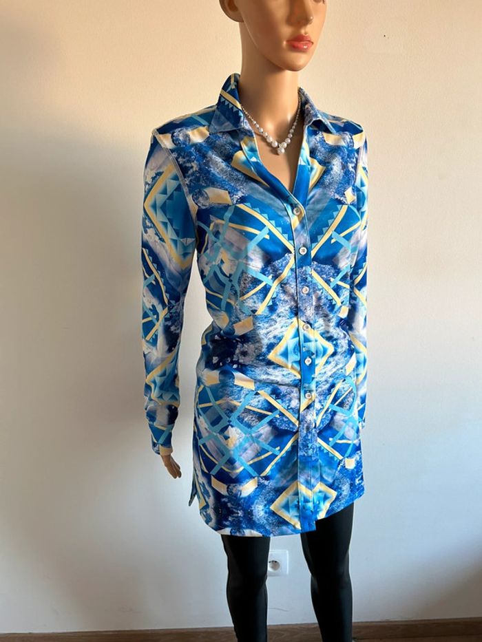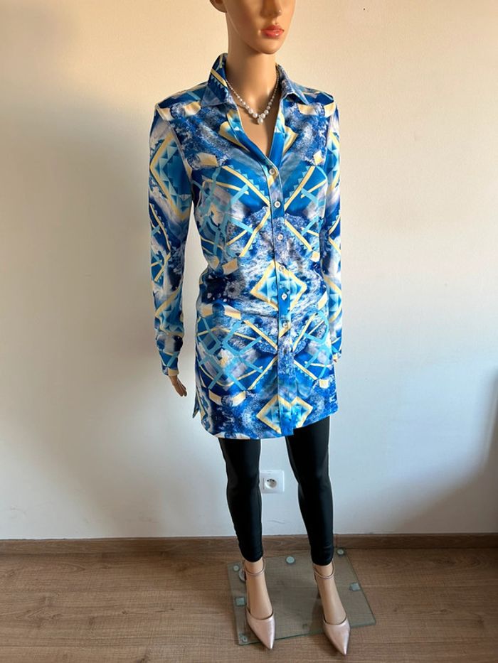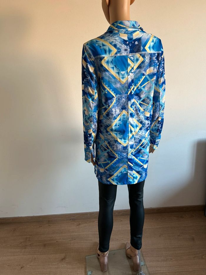 Jolie chemise bleue imprimée à manches longues. Taille M. Elle est neuve avec étiquette. aisselle à aisselle 46 cms et plus épaule à épaule 40 cms et plus longueur manches 61 cms taille 46 cms et plus longueur depuis épaule 81 cms Le tissu est extensible Le prix reste négociable dans la limite du raisonnable. Un petit cadeau dans le colis 🌸 (Boîte 8)