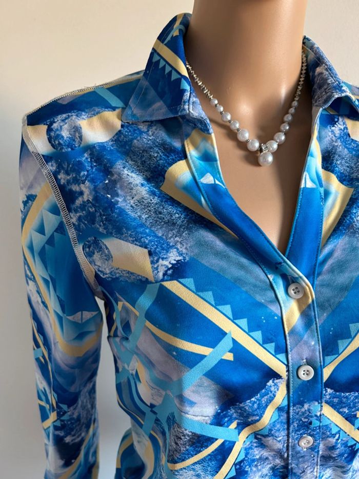 Chemise bleue imprimée neuve à manches longues taille M - photo numéro 1