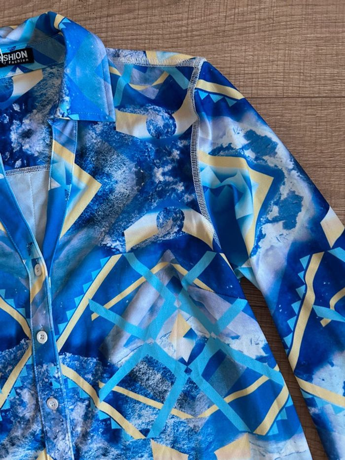 Chemise bleue imprimée neuve à manches longues taille M - photo numéro 2