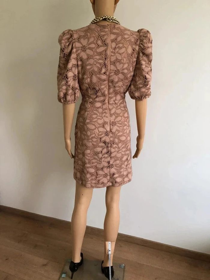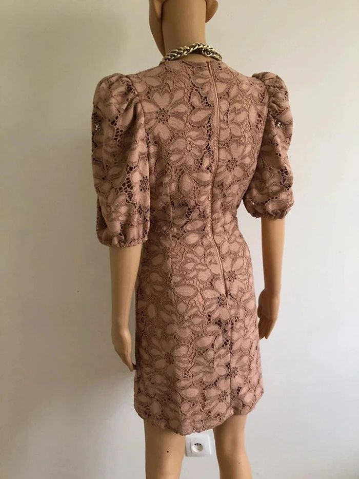Robe beige rose en dentelle à manches courtes Mango taille S comme neuve - photo numéro 4