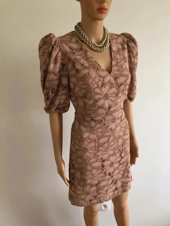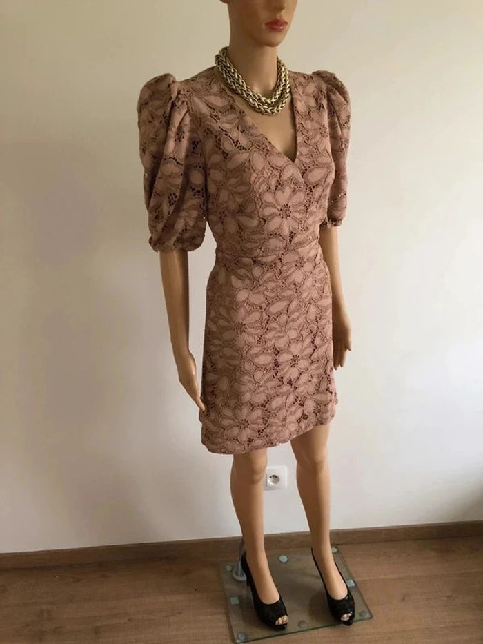 Robe beige rose en dentelle à manches courtes Mango taille S comme neuve - photo numéro 3