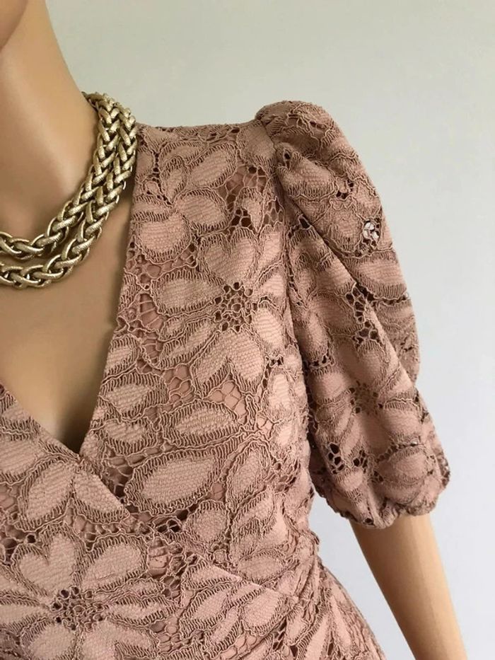 Robe beige rose en dentelle à manches courtes Mango taille S comme neuve - photo numéro 12