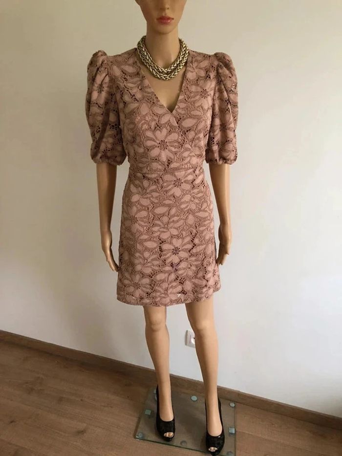 Robe beige rose en dentelle à manches courtes Mango taille S comme neuve - photo numéro 2