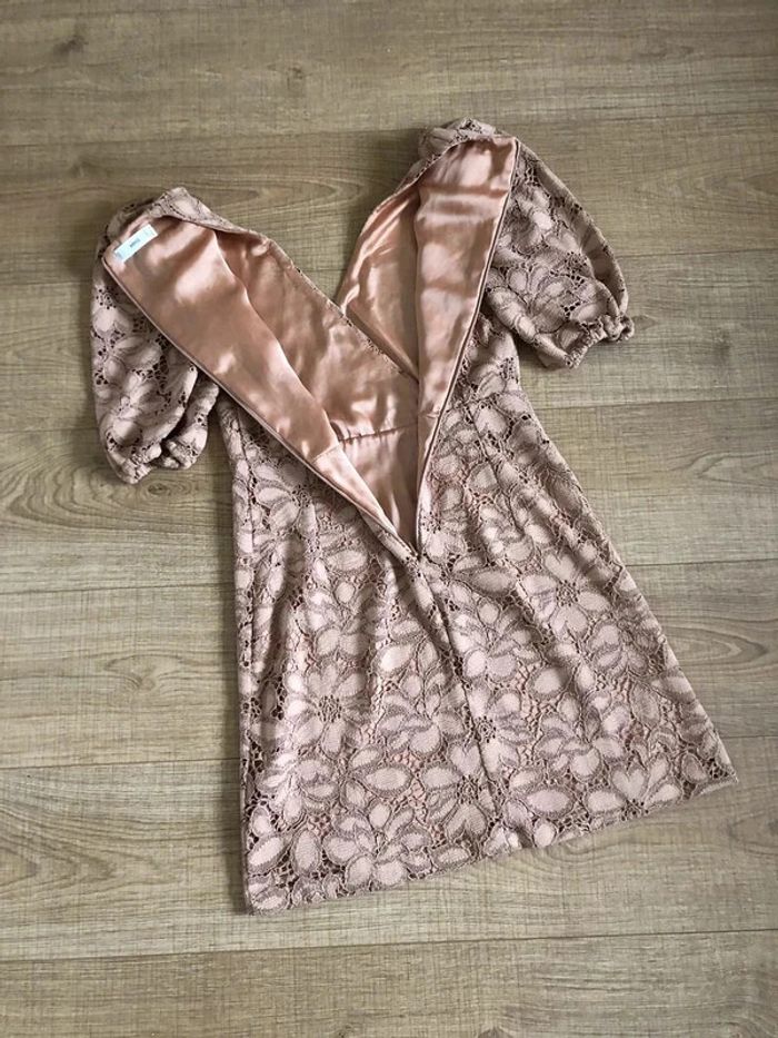 Robe beige rose en dentelle à manches courtes Mango taille S comme neuve - photo numéro 7