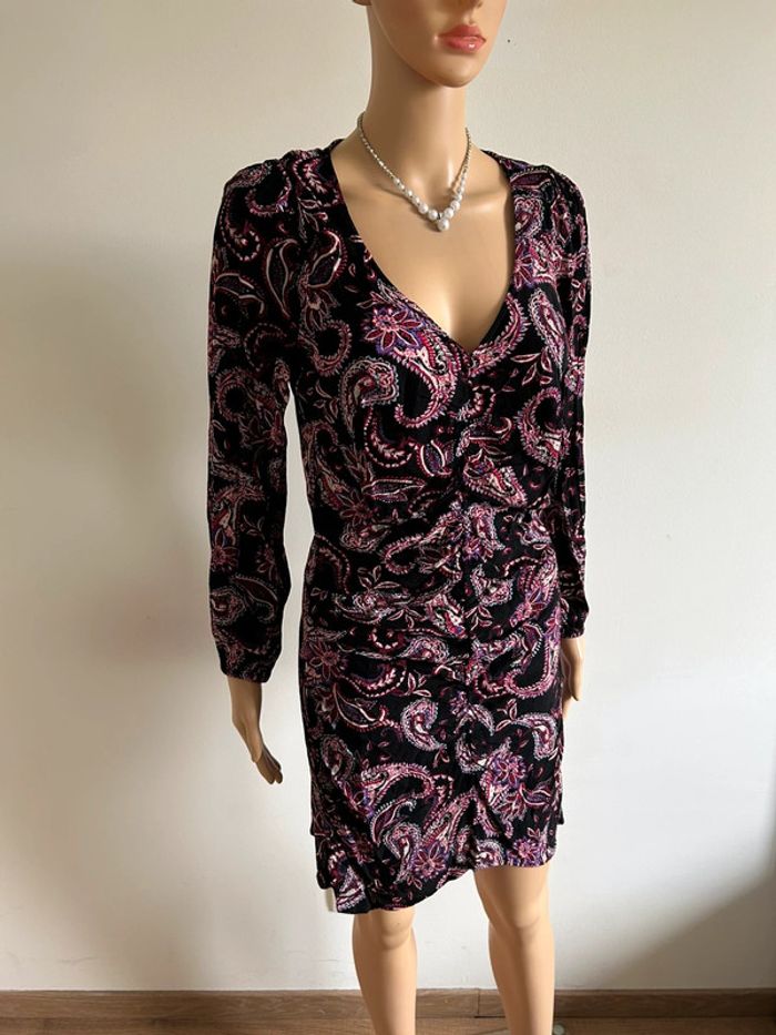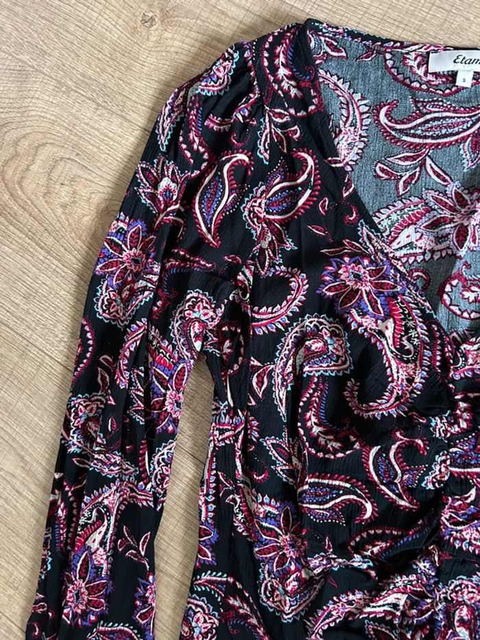 Robe noire et imprimée à manches longues Etam taille S jamais portée - photo numéro 7
