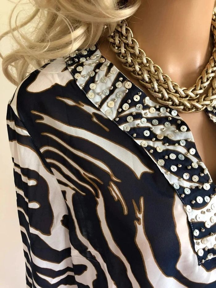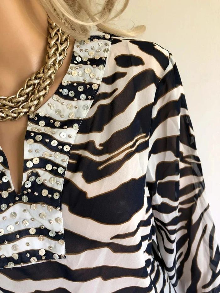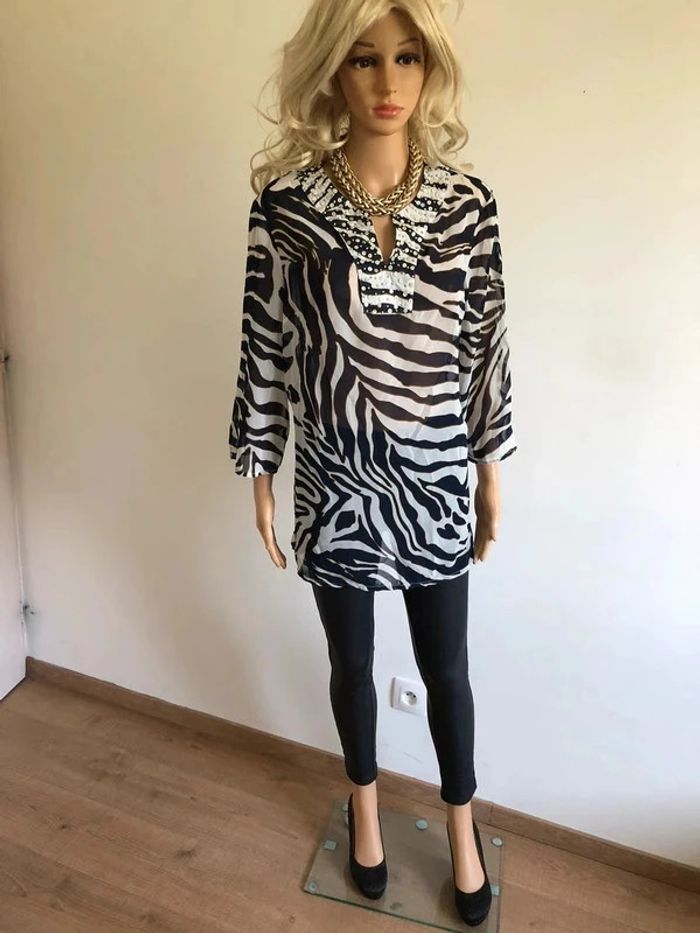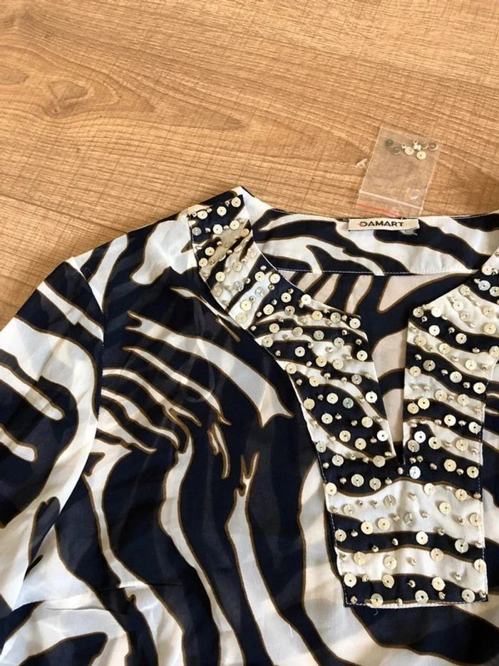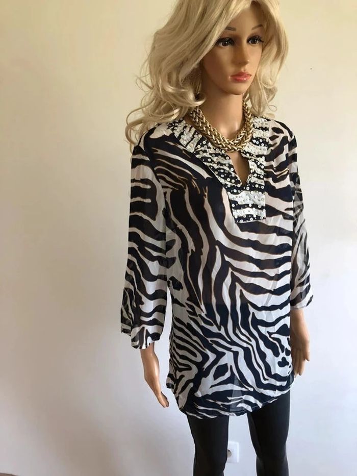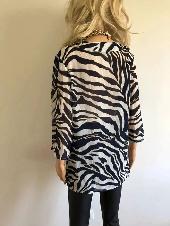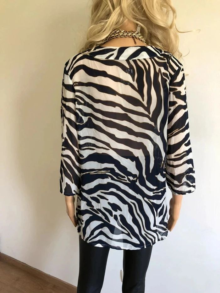 Blouse bleue marine et blanche transparente Damart taille 42/44 jamais portée (taille petit) - photo numéro 12