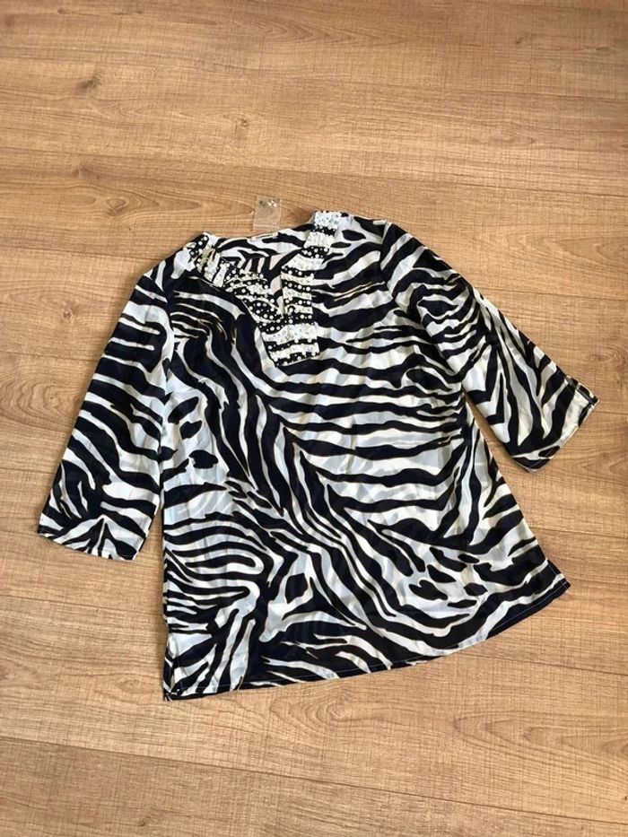 Blouse bleue marine et blanche transparente Damart taille 42/44 jamais portée (taille petit) - photo numéro 7