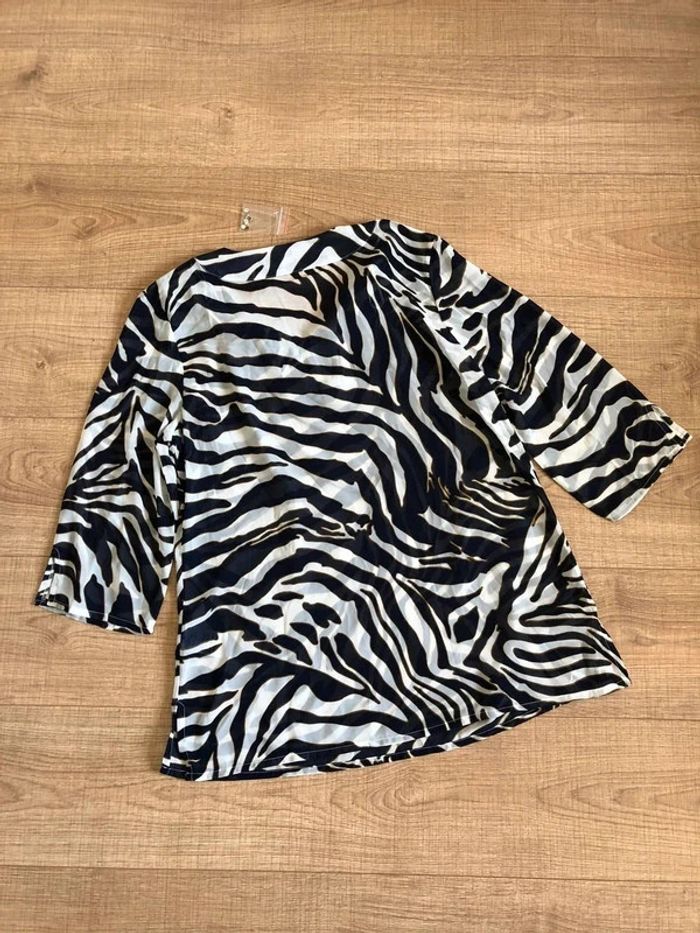 Blouse bleue marine et blanche transparente Damart taille 42/44 jamais portée (taille petit) - photo numéro 4