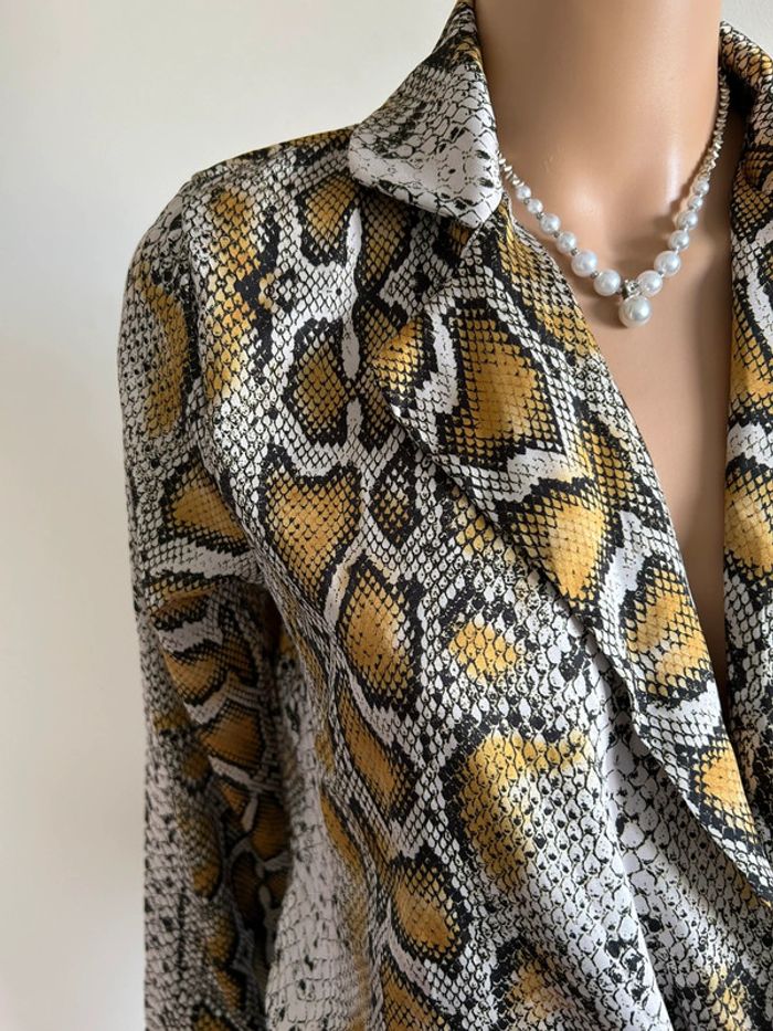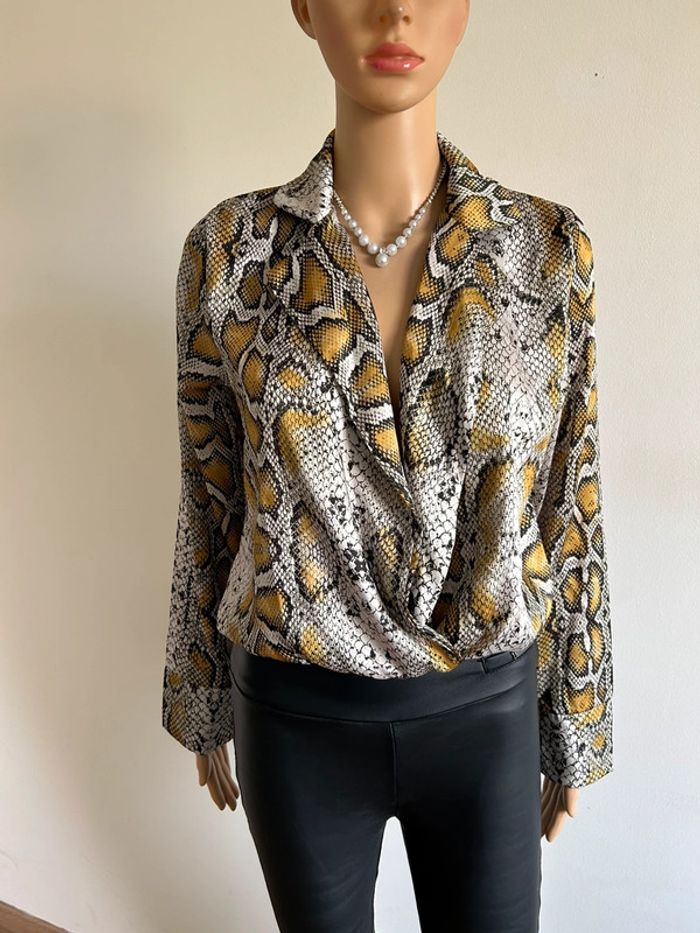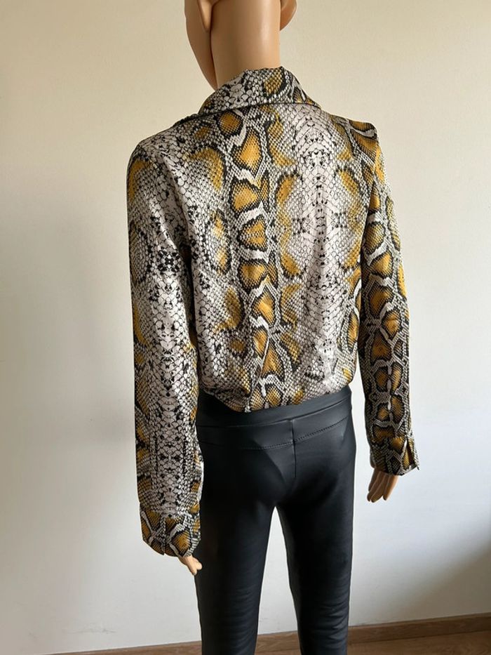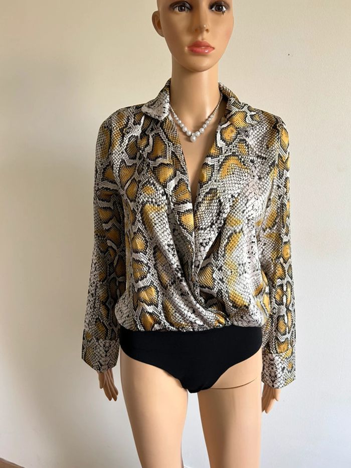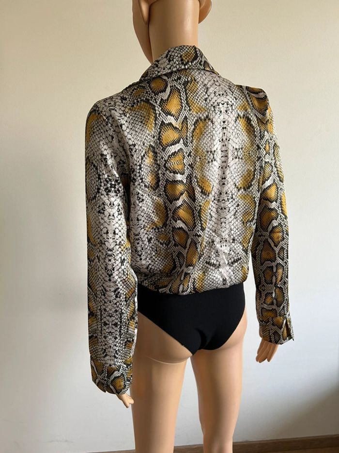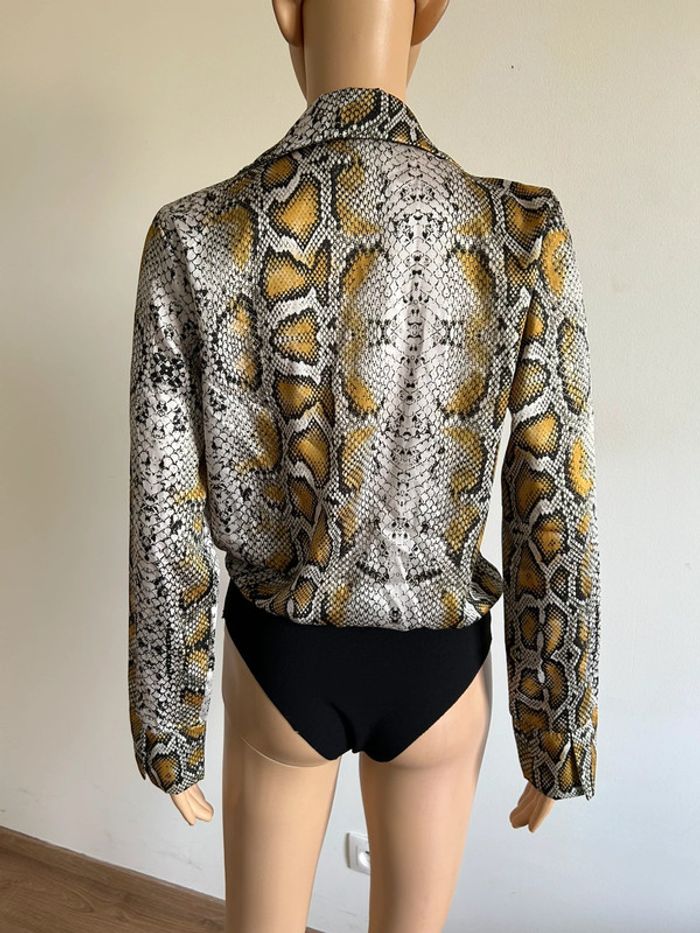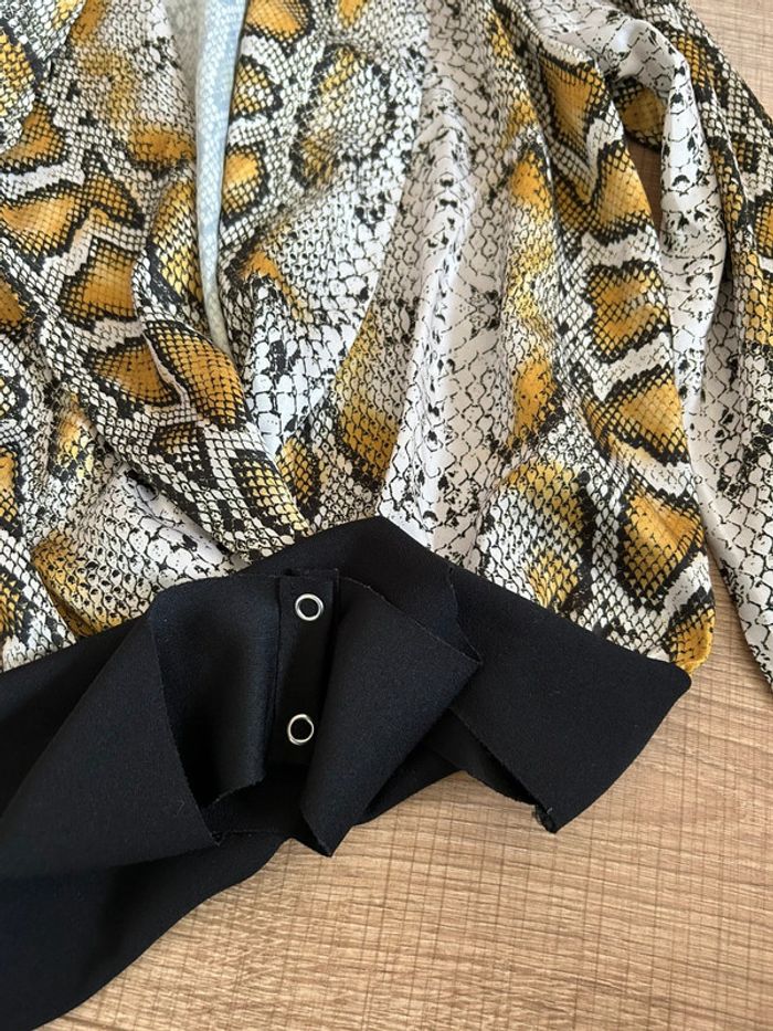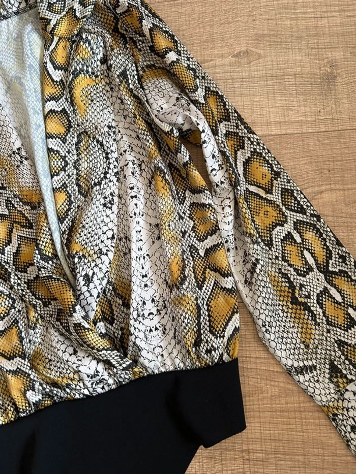 Magnifique body noir et imprimé python, à manches longues. Taille unique qui convient jusqu’au 38. Jamais porté, état neuf. aisselle à aisselle 47 cms épaule à épaule 37 cms longueur manches 61 cms taille 36 cms à 41 cms longueur depuis épaule 73 cms 95% polyester et 5% elasthanne Le prix reste négociable dans la limite du raisonnable. Un petit cadeau dans le colis 🌸 (Boîte 51)