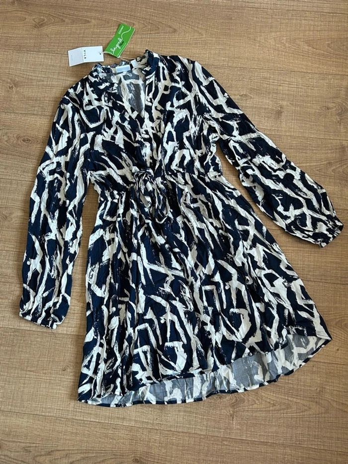 Robe bleue marine et blanche neuve à manches longues Vila taille 38 (valeur 50€)